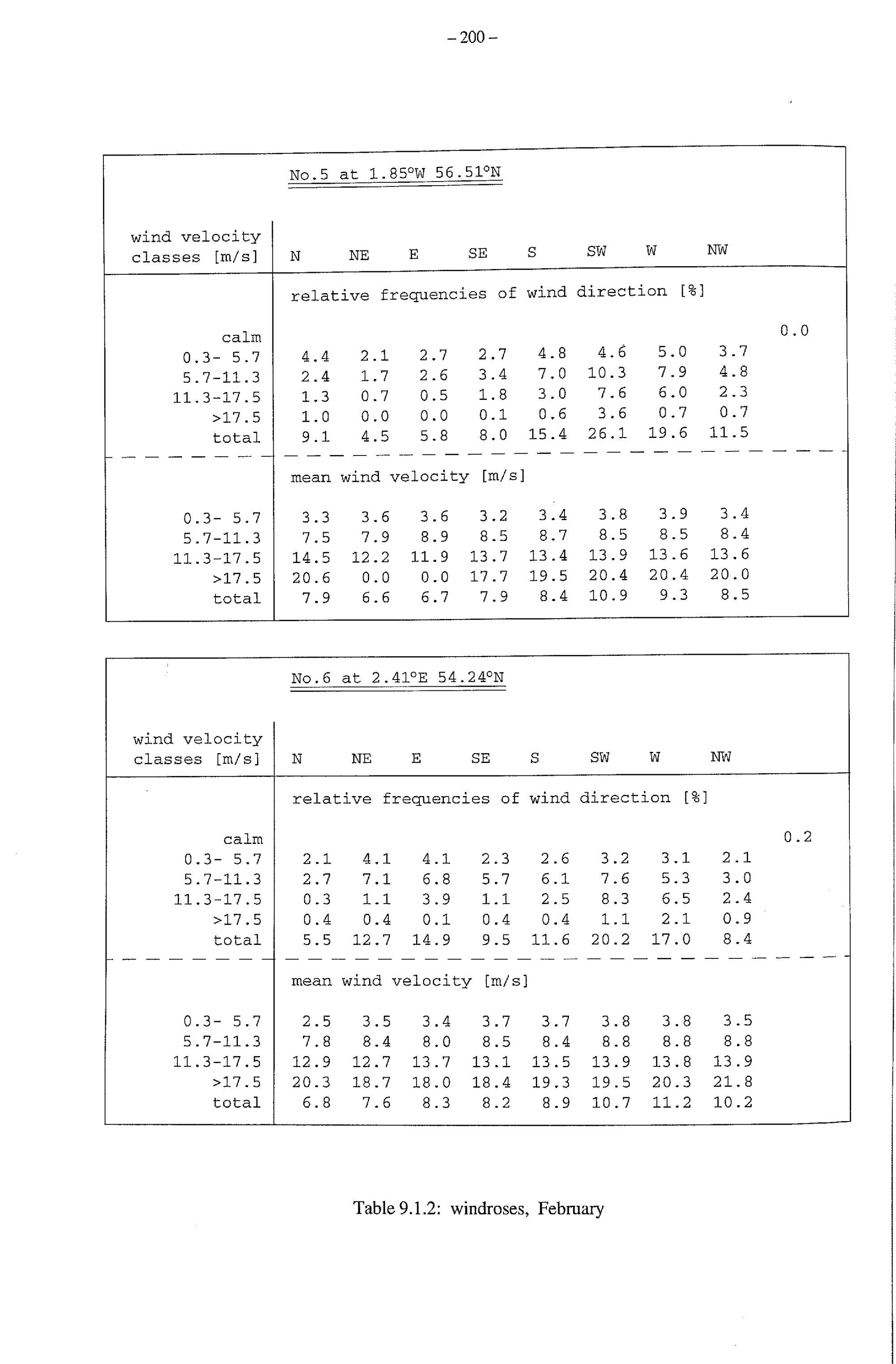 9.1. Tables of windroses