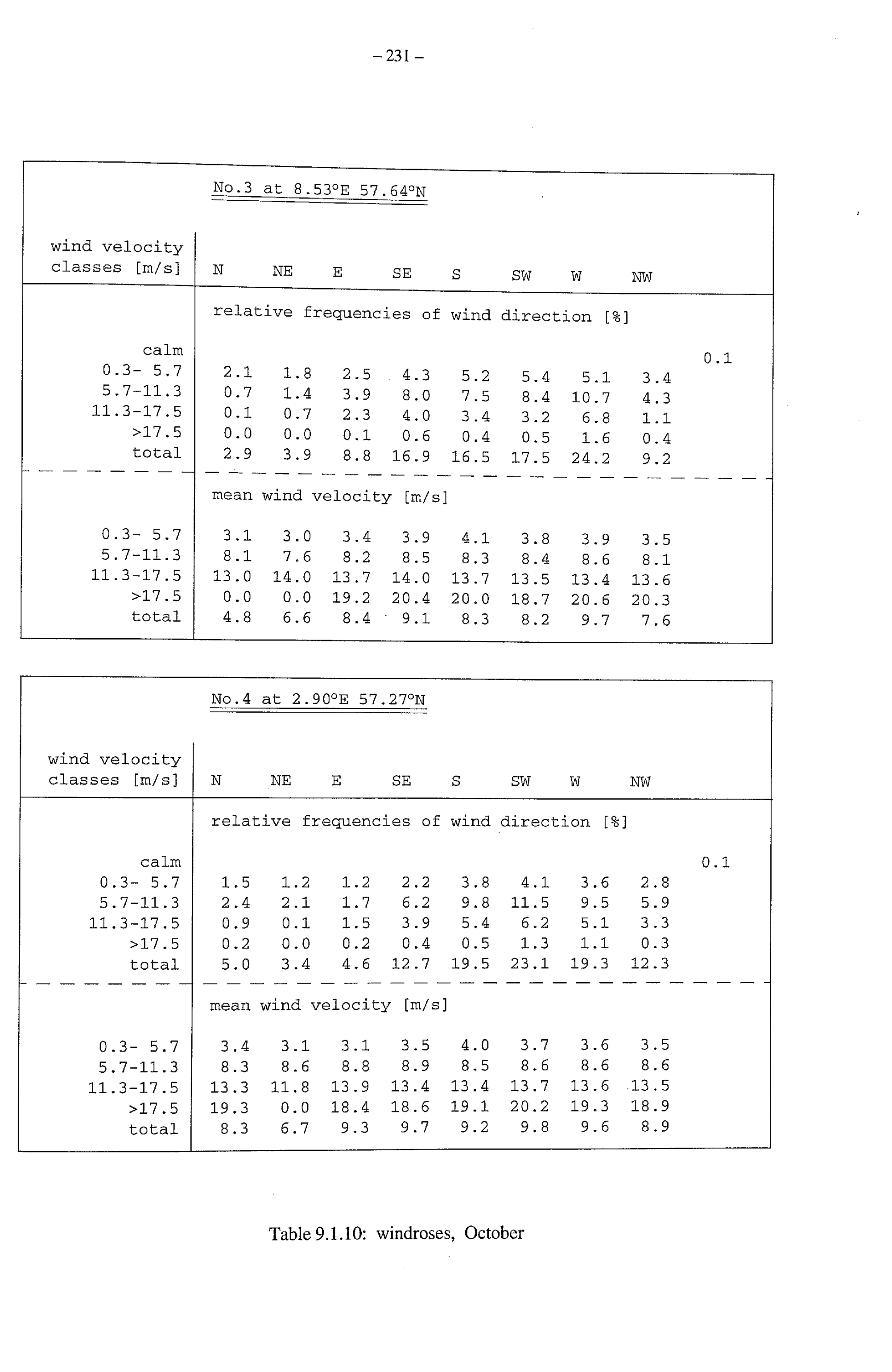 9.1. Tables of windroses