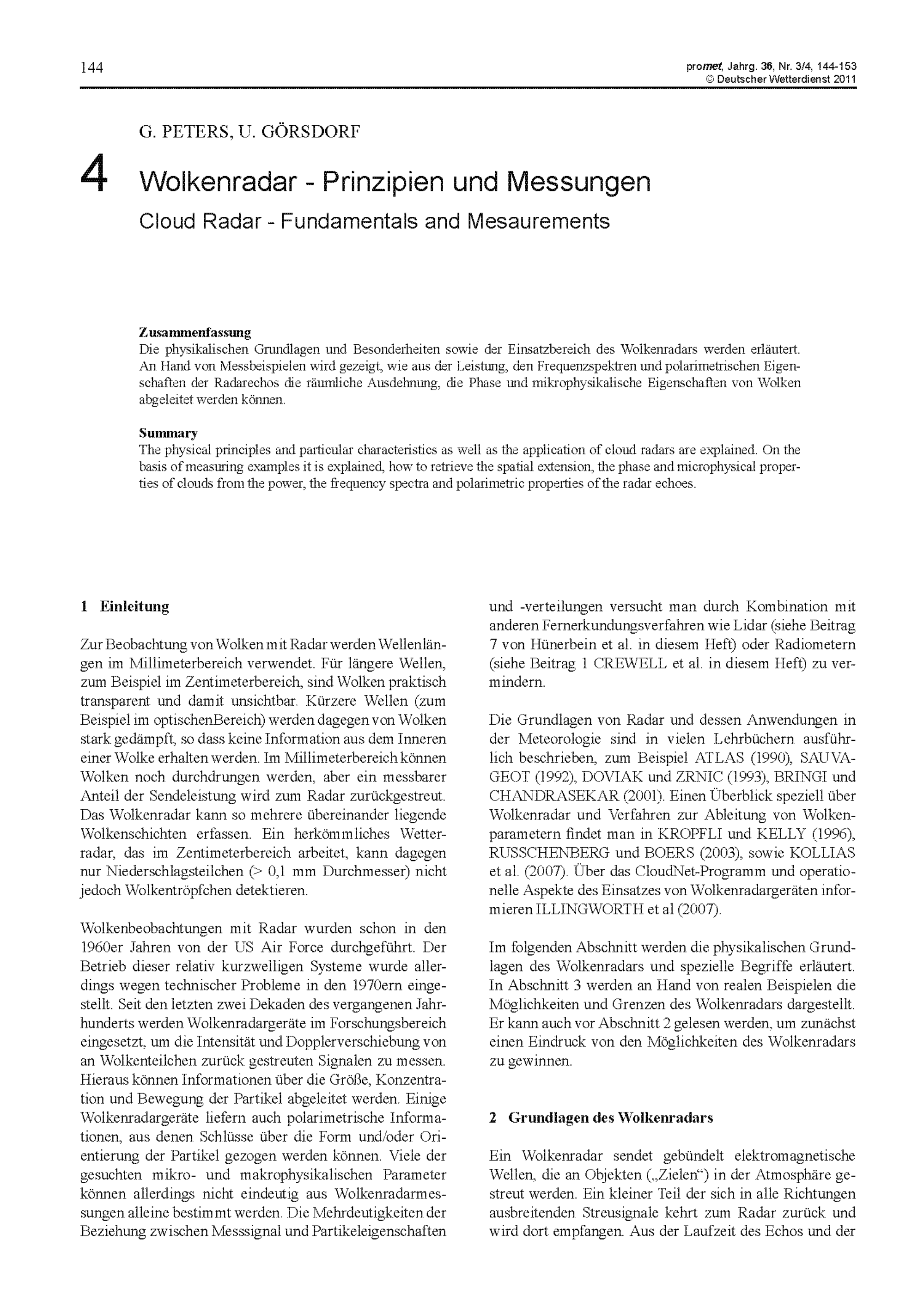 4. G. Peters, U. Görsdorf: Wolkenradar - Prinzipien und Messungen