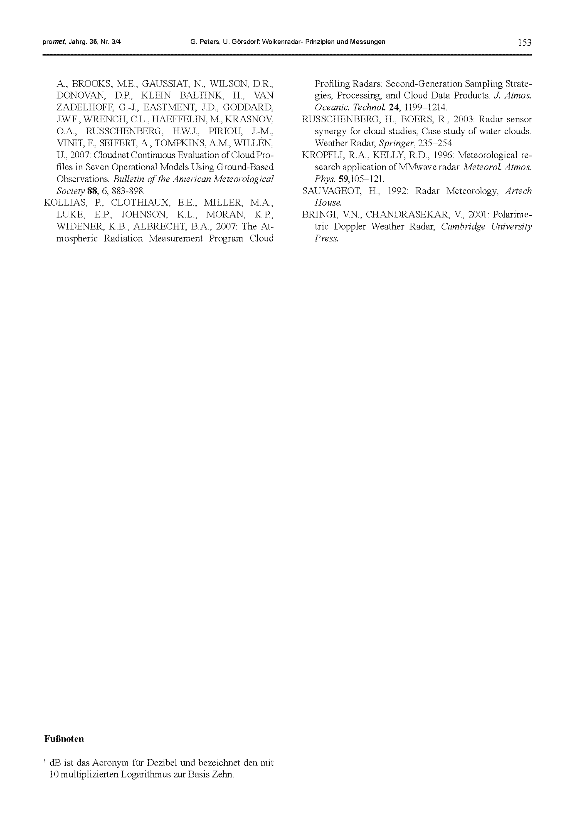 4. G. Peters, U. Görsdorf: Wolkenradar - Prinzipien und Messungen