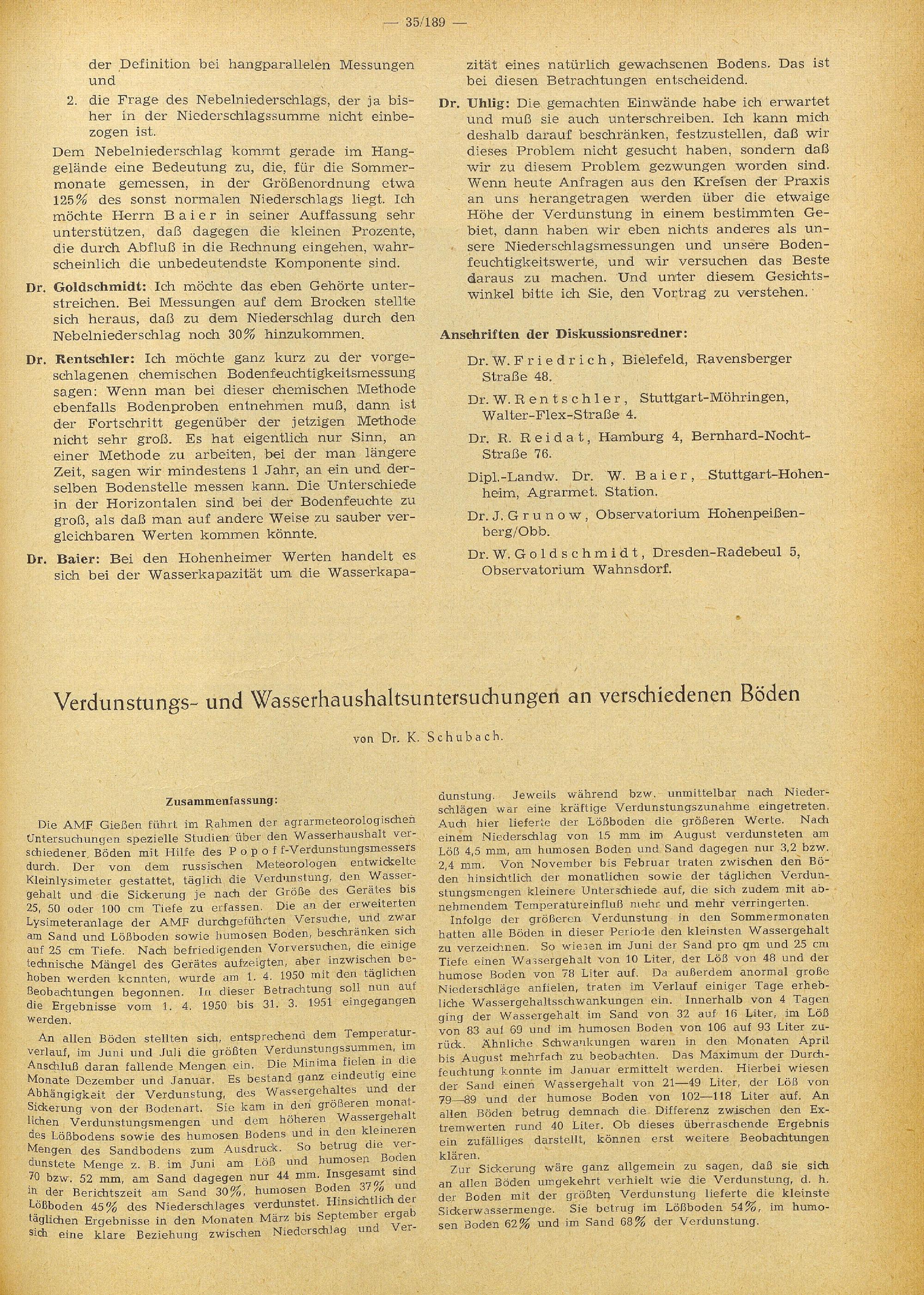 Die Meteorologische Tagung in Bad Kissingen vom 12. bis 15. Oktober 1951