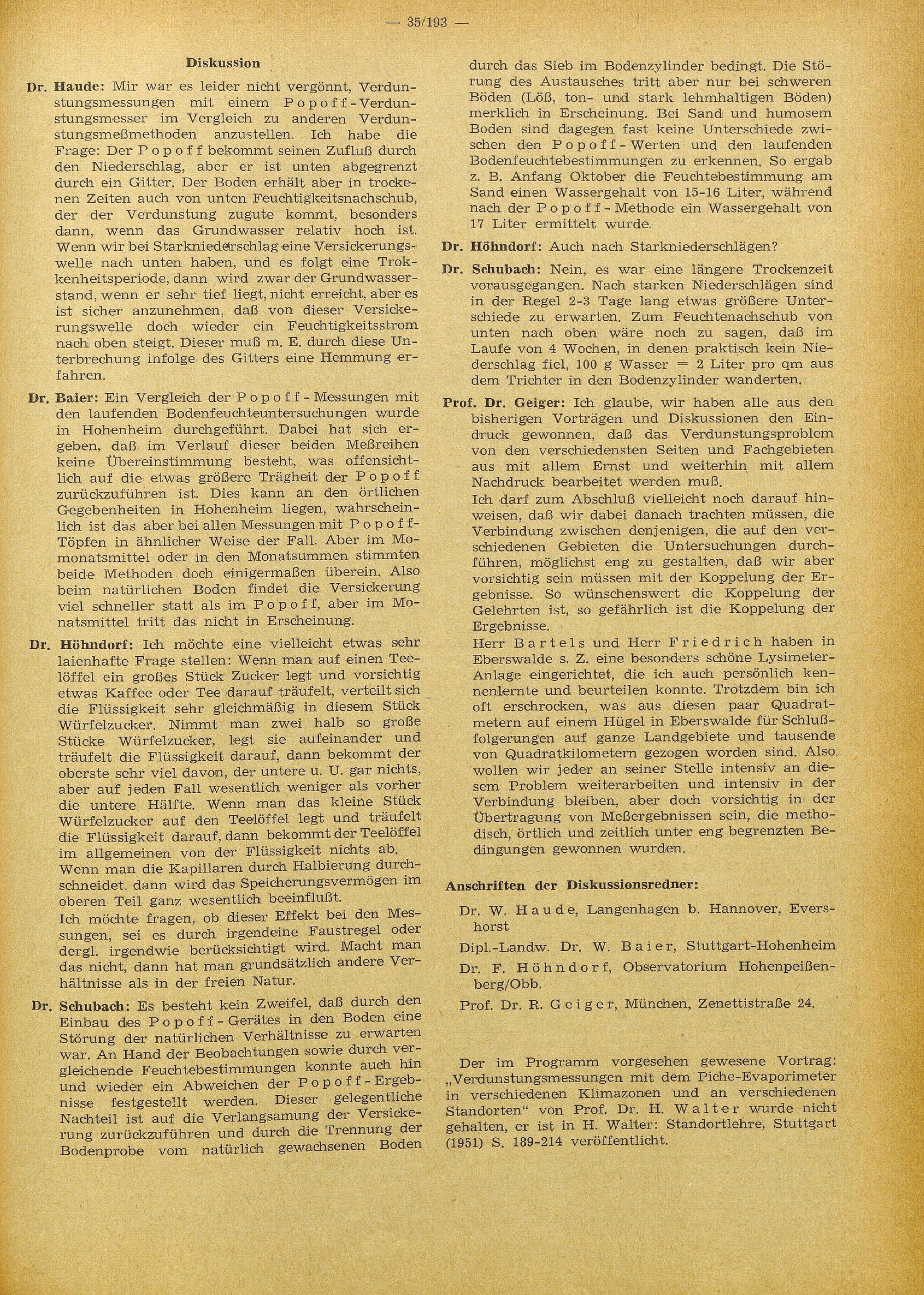 Dritte Fachsitzung: Verdunstung