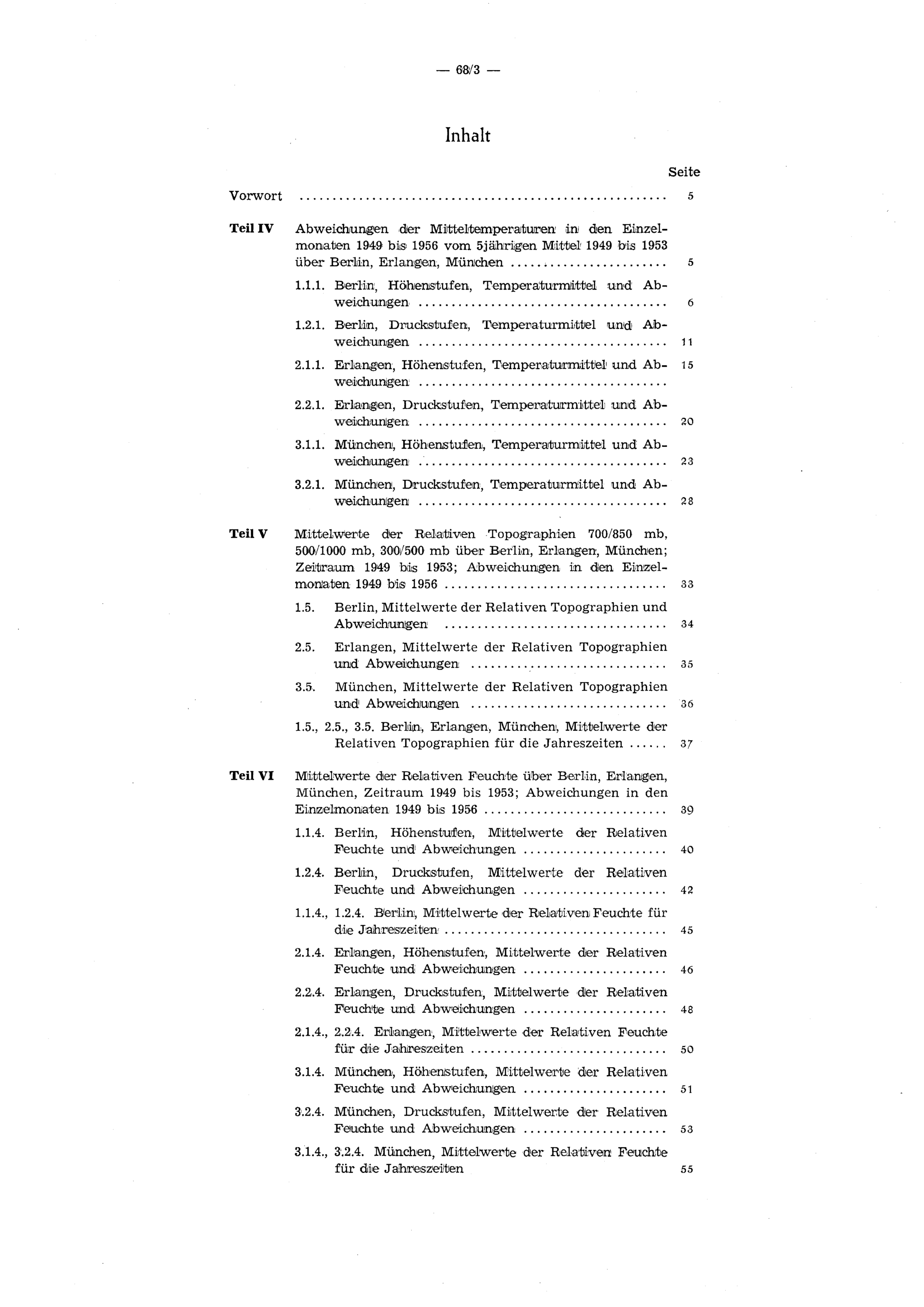 Teil V: Mittelwerte der Relativen Topographien 700/850 mb, 500/1000 mb, 300/500 mb über Berlin, Erlangen, München; Zeitraum 1949 bis 1953; Abweichungen in den Einzelmonaten 1949 bis 1956