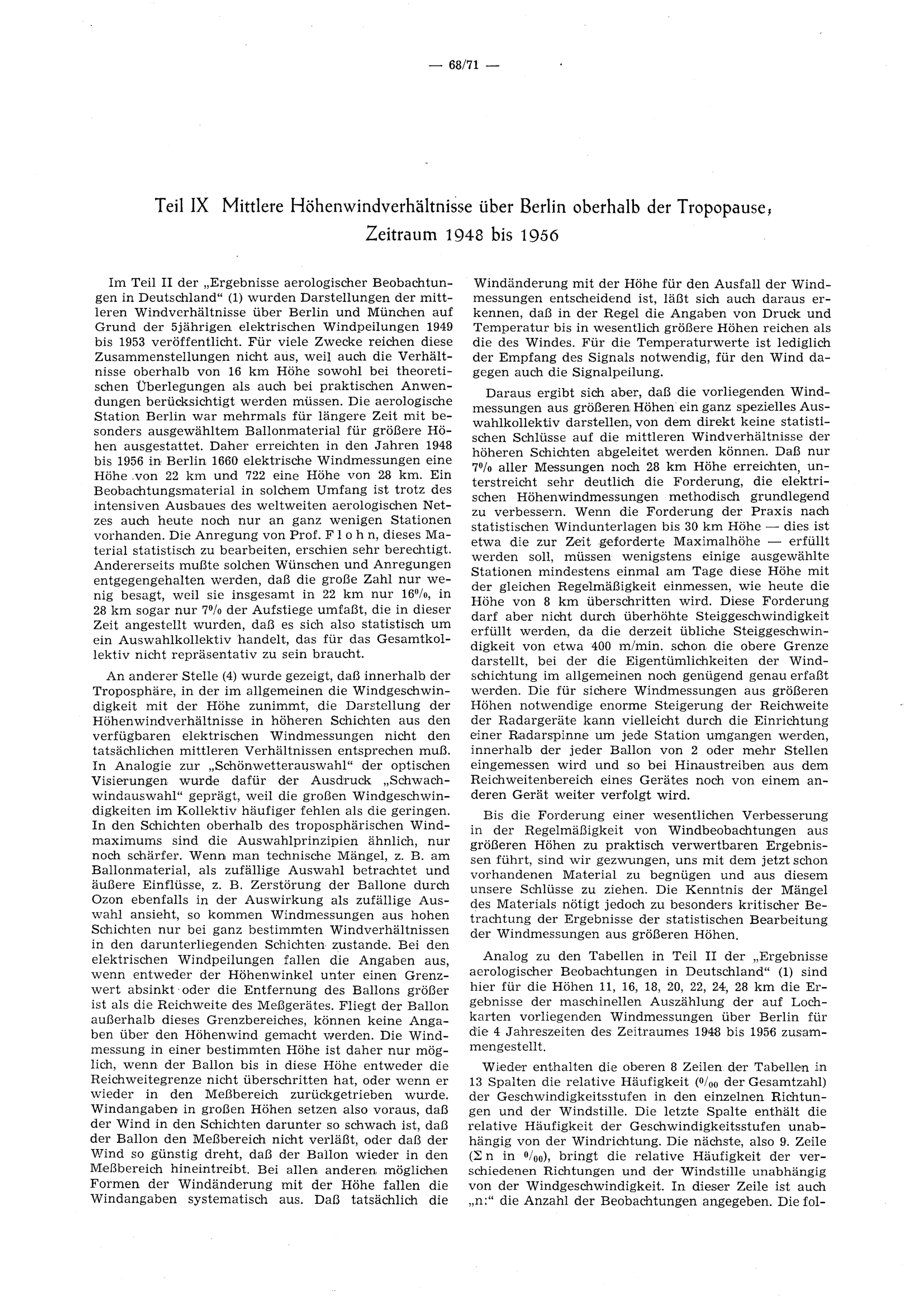 Teil IX: Mittlere Höhenwindverhältnisse über Berlin oberhalb der Tropopause, Zeitraum 1948 bis 1956