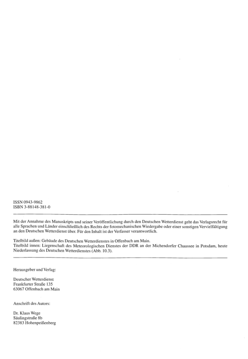 Die Entwicklung der meteorologischen Dienste in Deutschland / von Klaus Wege