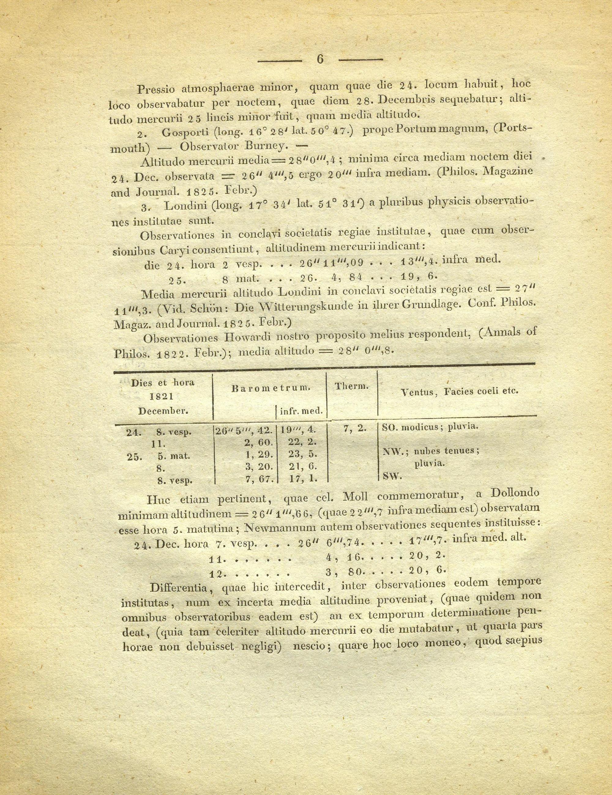 Obervationes meteorologicae, diebus 24, 25, 26, decembris anni 1821 institutae