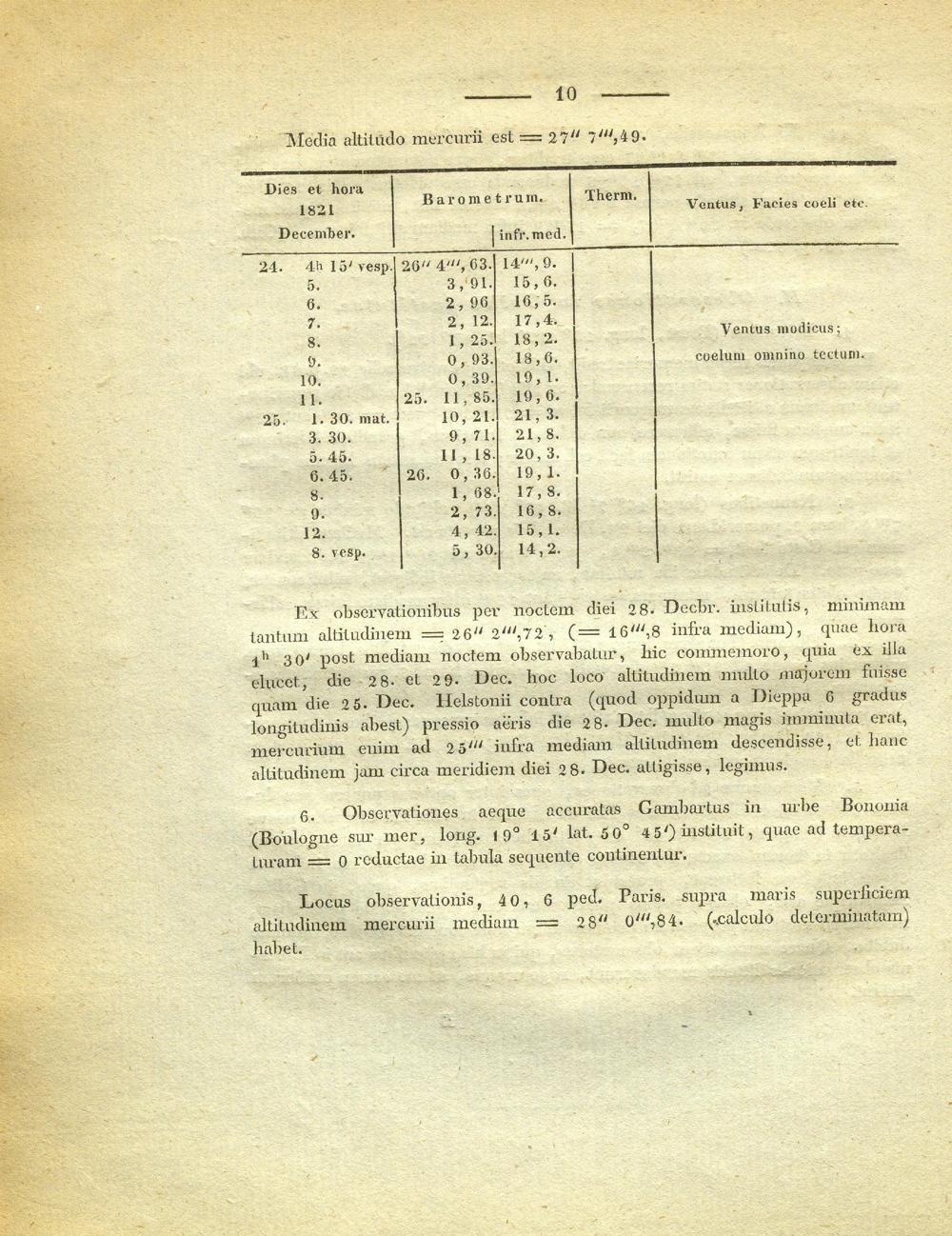 Obervationes meteorologicae, diebus 24, 25, 26, decembris anni 1821 institutae