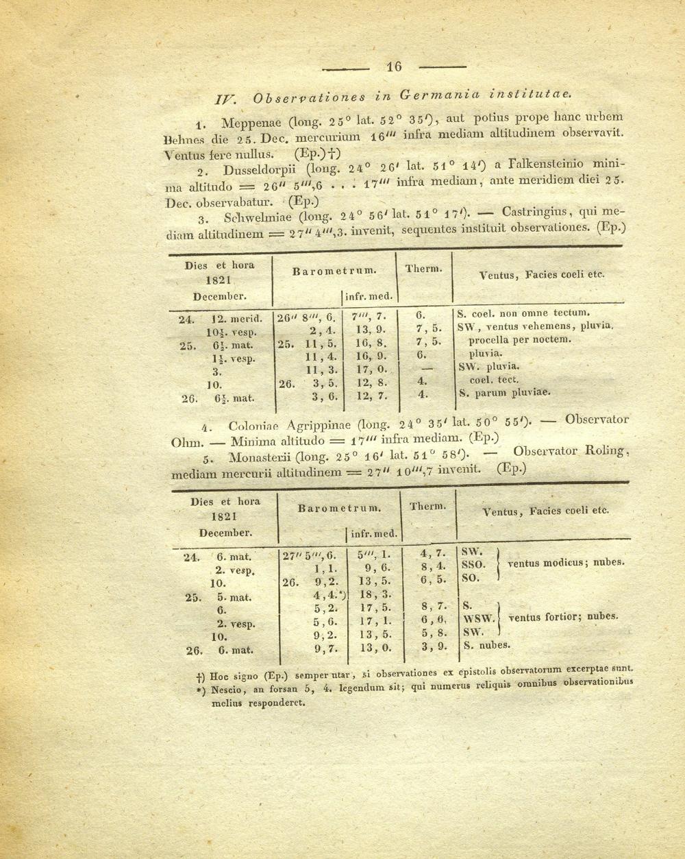 Obervationes meteorologicae, diebus 24, 25, 26, decembris anni 1821 institutae