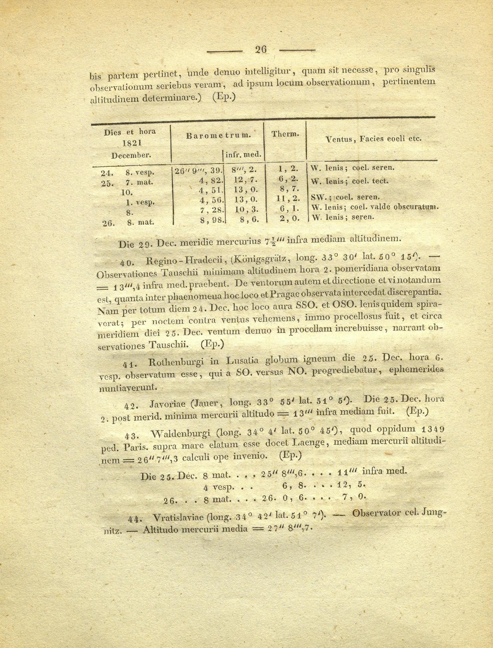 Obervationes meteorologicae, diebus 24, 25, 26, decembris anni 1821 institutae