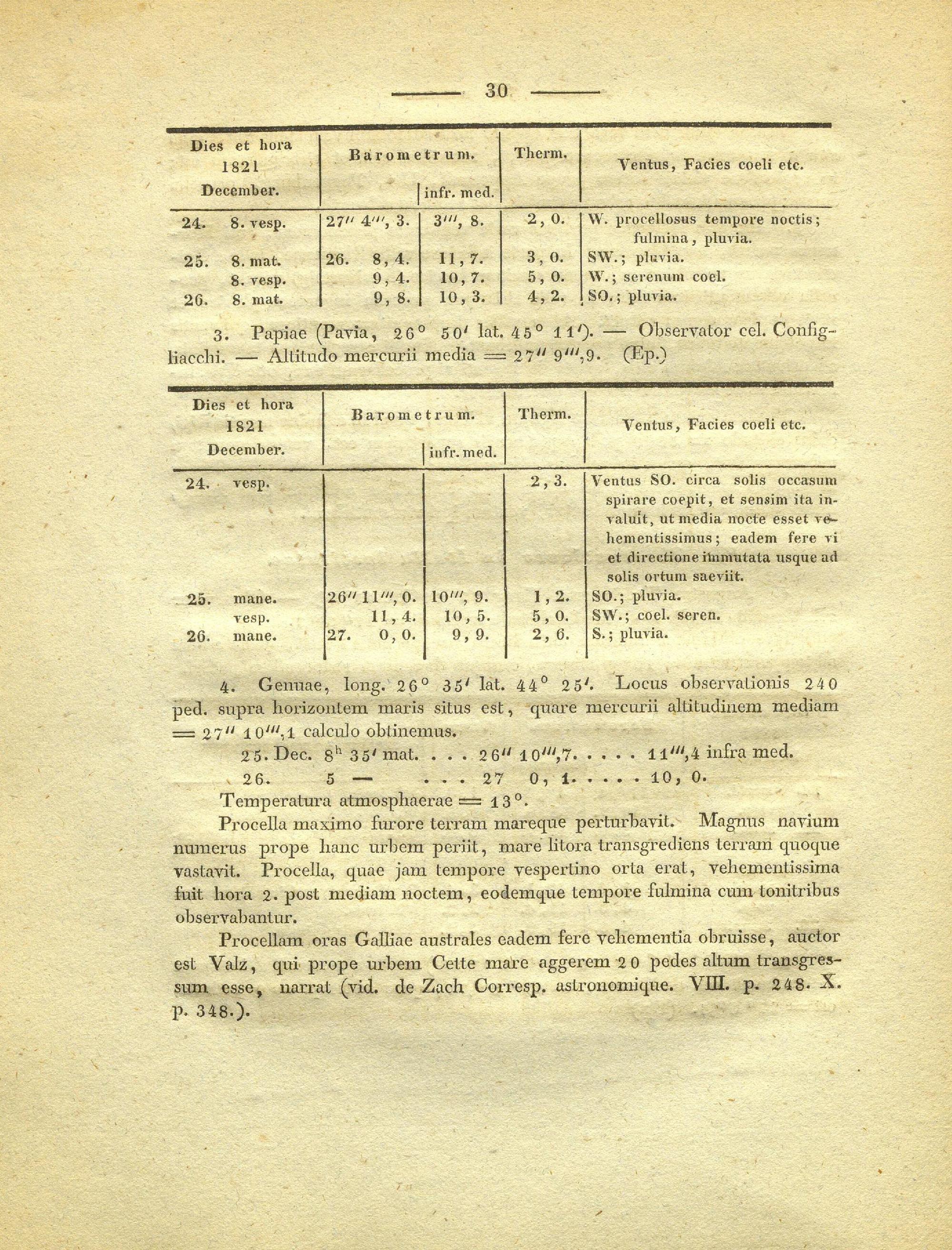 Obervationes meteorologicae, diebus 24, 25, 26, decembris anni 1821 institutae