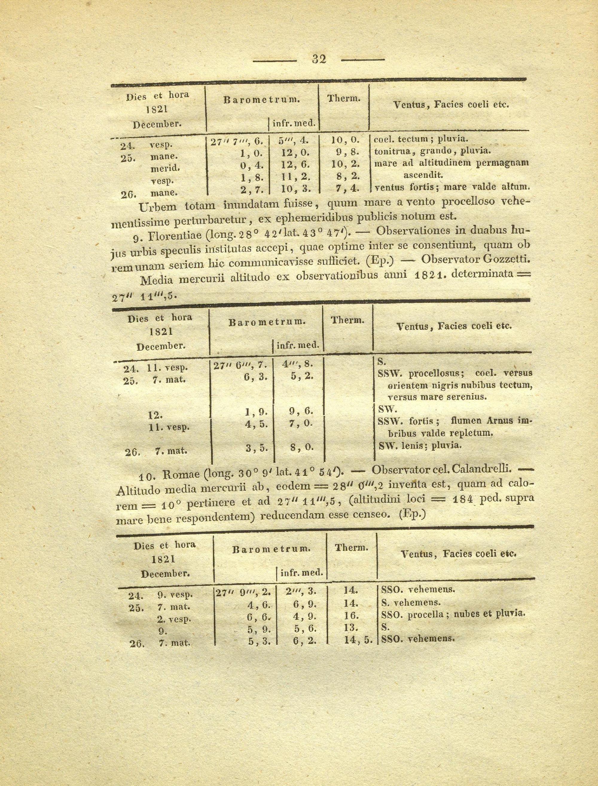 Obervationes meteorologicae, diebus 24, 25, 26, decembris anni 1821 institutae