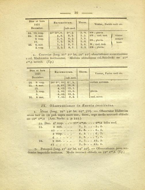 Obervationes meteorologicae, diebus 24, 25, 26, decembris anni 1821 institutae