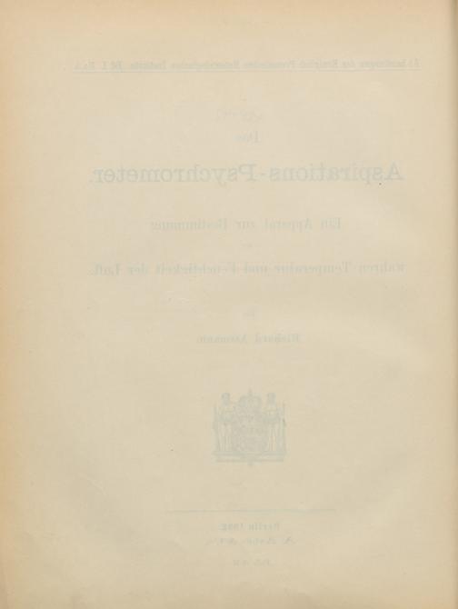 Das Aspirations-Psychrometer : ein Apparat zur Bestimmung der wahren Temperatur und Feuchtigkeit der Luft / von Richard Assmann