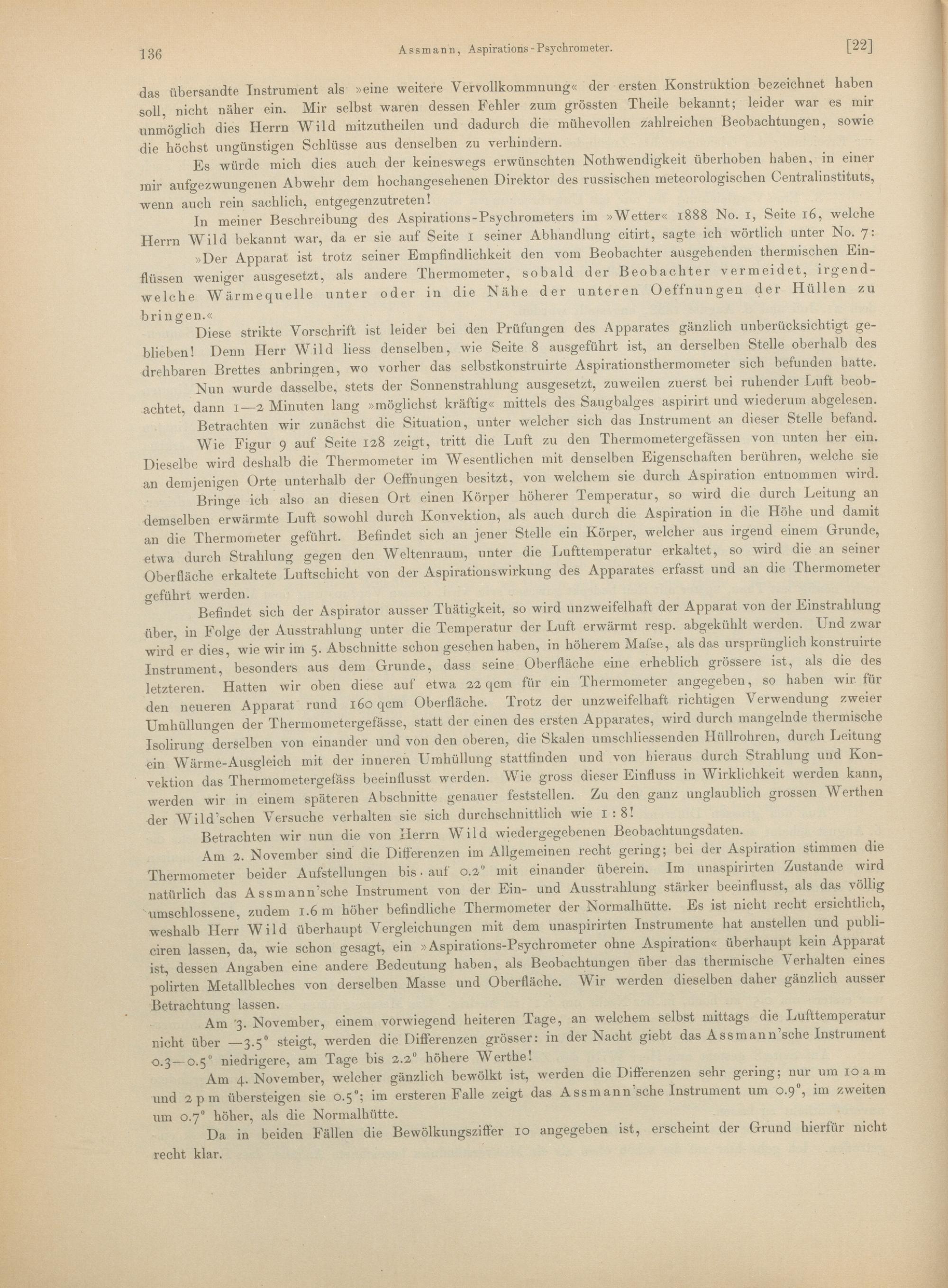 7. Das abgeänderte Aspirations-Psychrometer und seine Prüfung durch Herrn Professor Wild