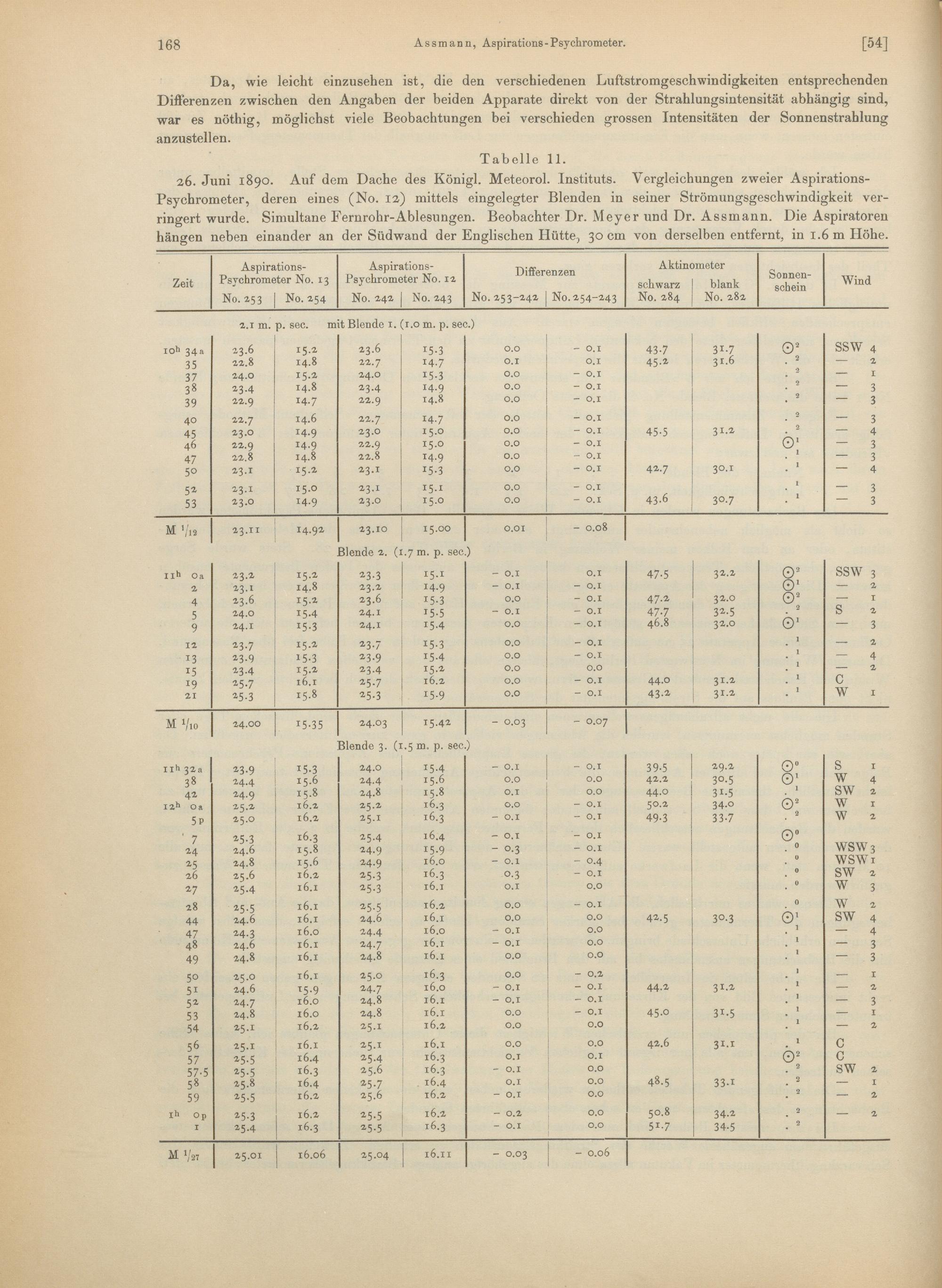 11. Vergleichende Beobachtungen des Normal-Aspirations-Thermometers mit anderen Methoden zur Ermittelung der Lufttemperatur
