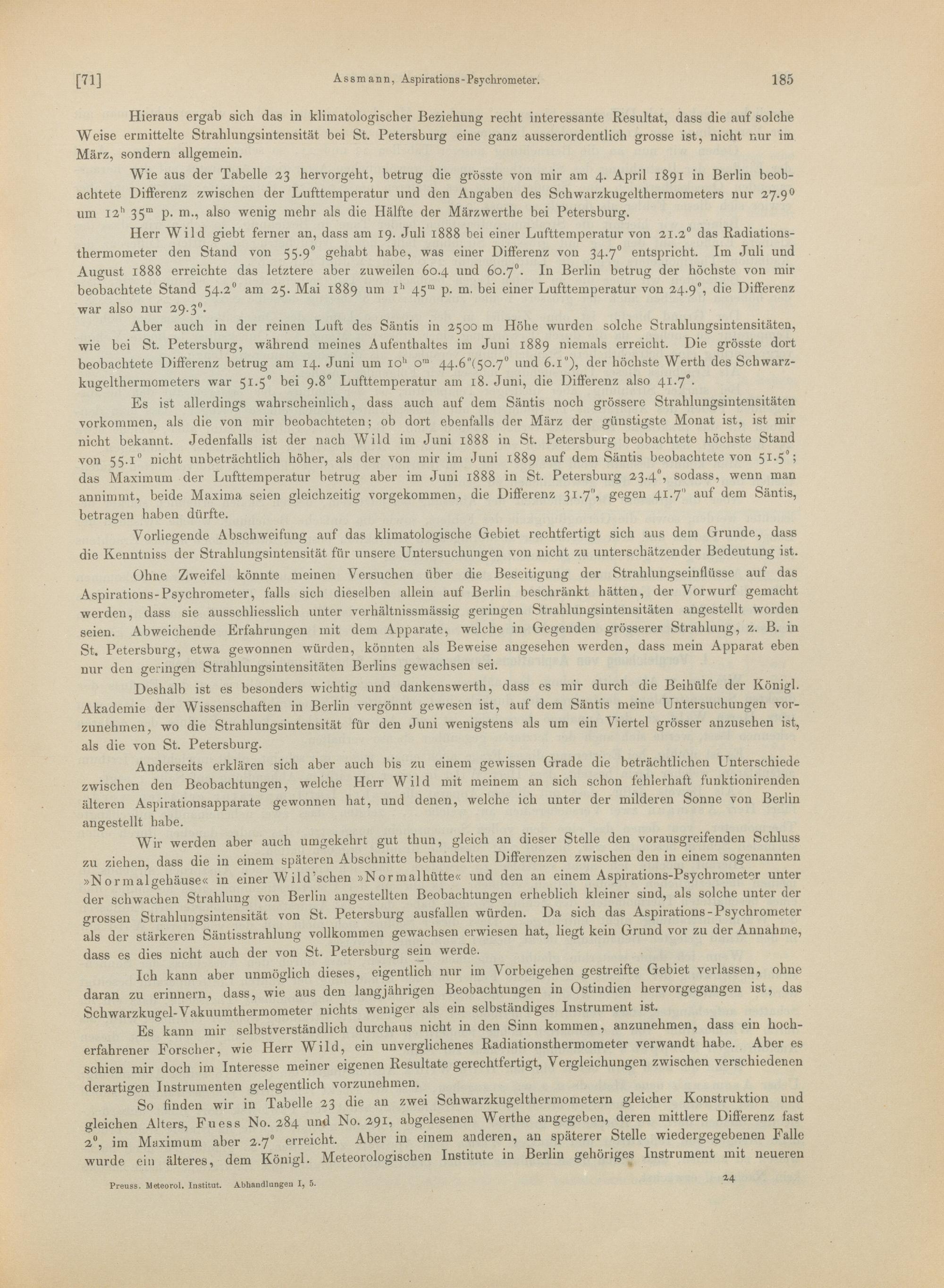 7. Das abgeänderte Aspirations-Psychrometer und seine Prüfung durch Herrn Professor Wild