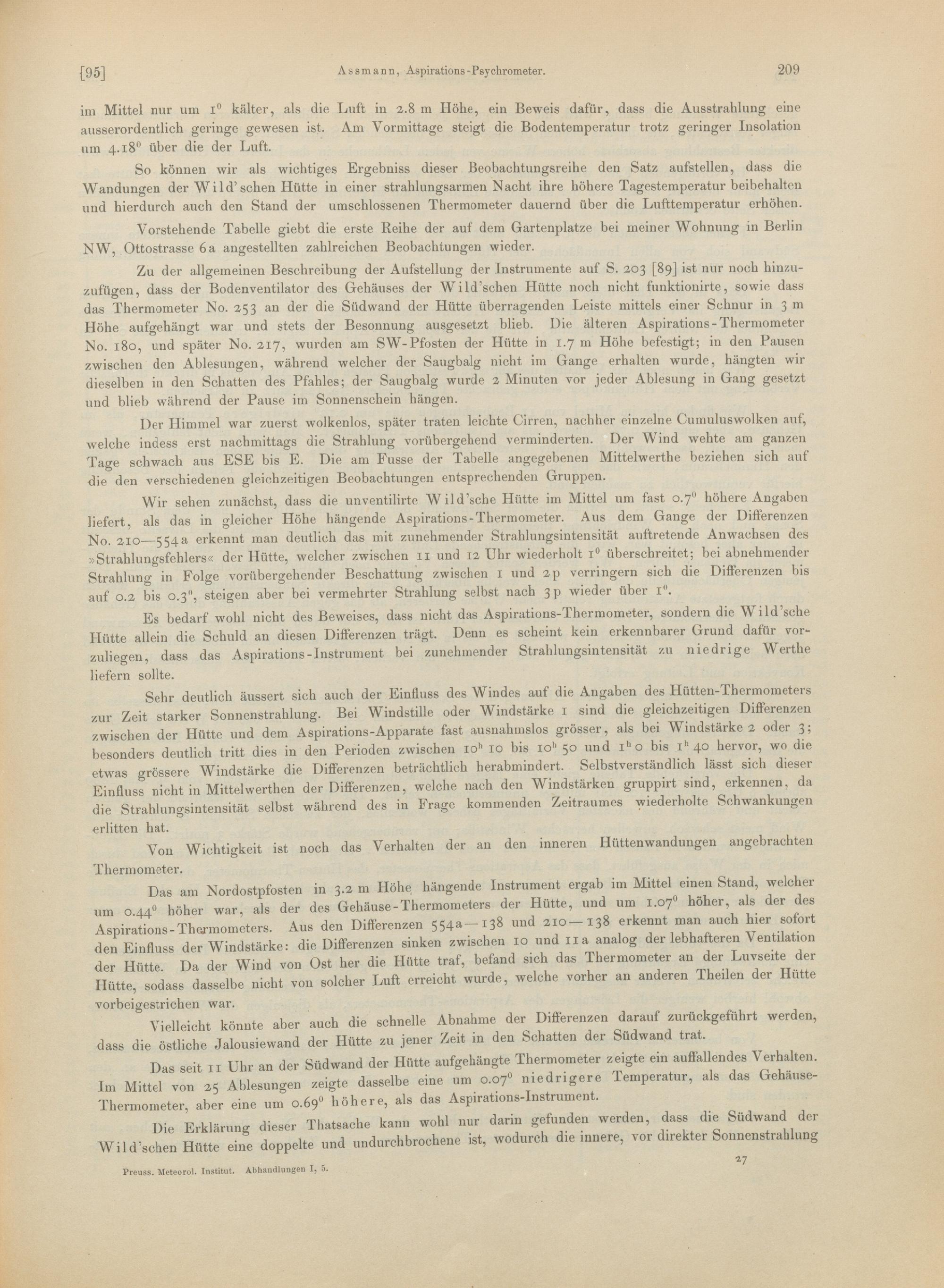 11. Vergleichende Beobachtungen des Normal-Aspirations-Thermometers mit anderen Methoden zur Ermittelung der Lufttemperatur