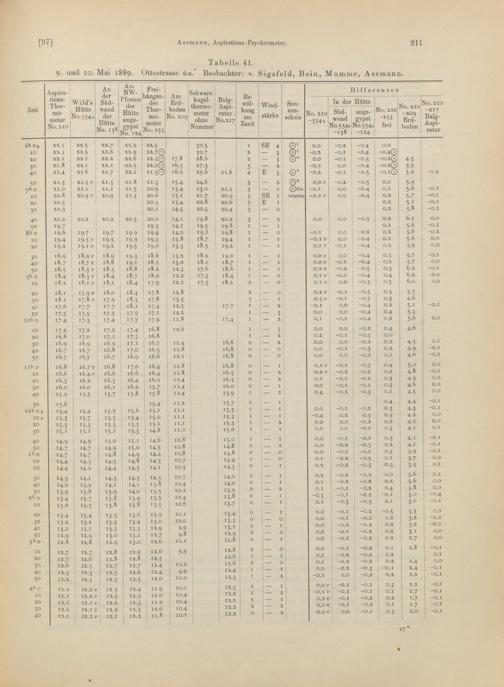 11. Vergleichende Beobachtungen des Normal-Aspirations-Thermometers mit anderen Methoden zur Ermittelung der Lufttemperatur