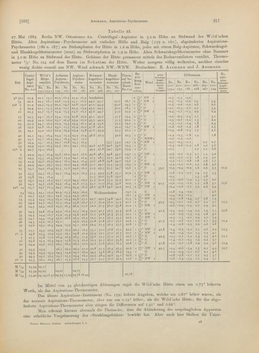 7. Das abgeänderte Aspirations-Psychrometer und seine Prüfung durch Herrn Professor Wild