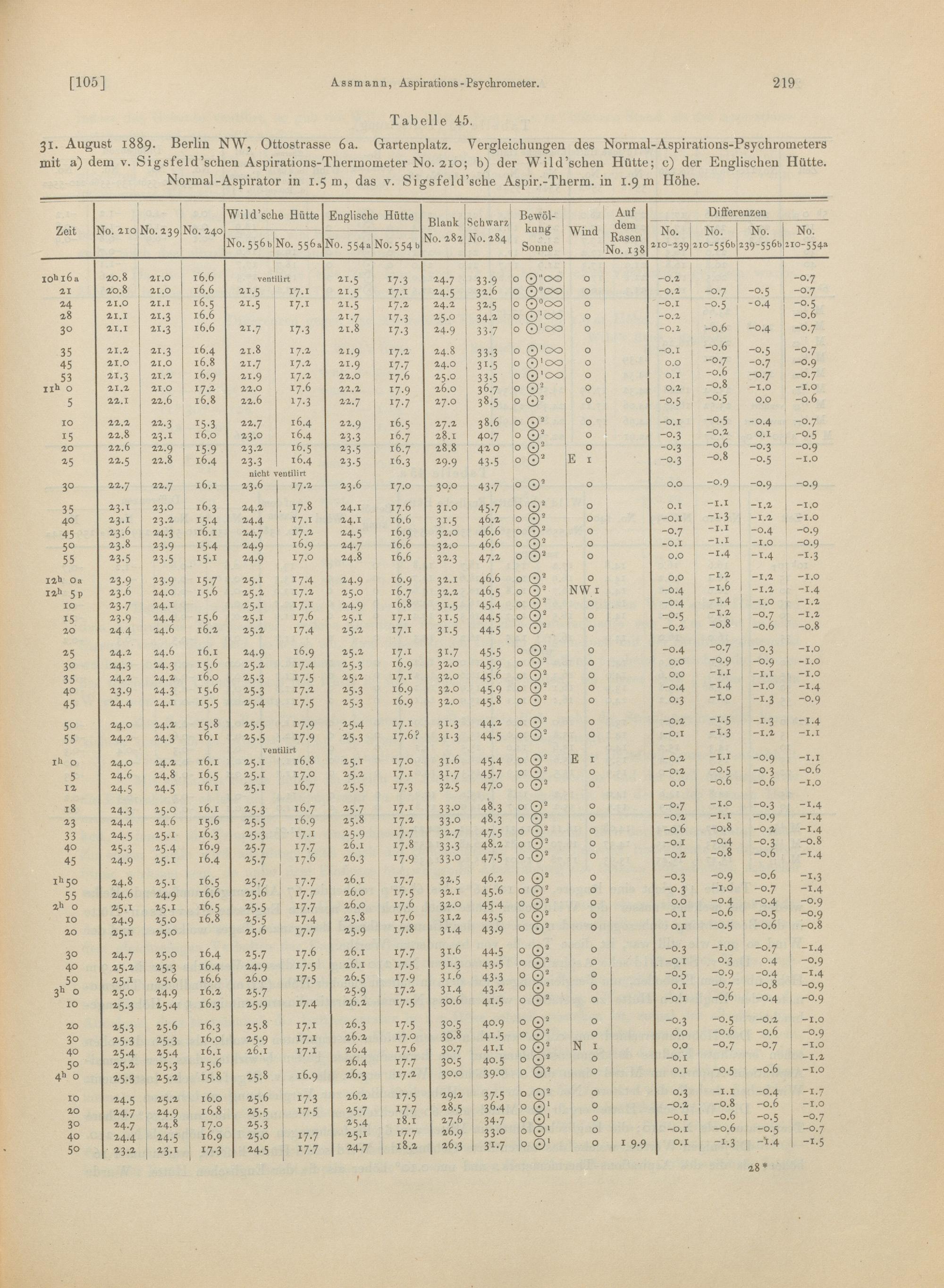 11. Vergleichende Beobachtungen des Normal-Aspirations-Thermometers mit anderen Methoden zur Ermittelung der Lufttemperatur