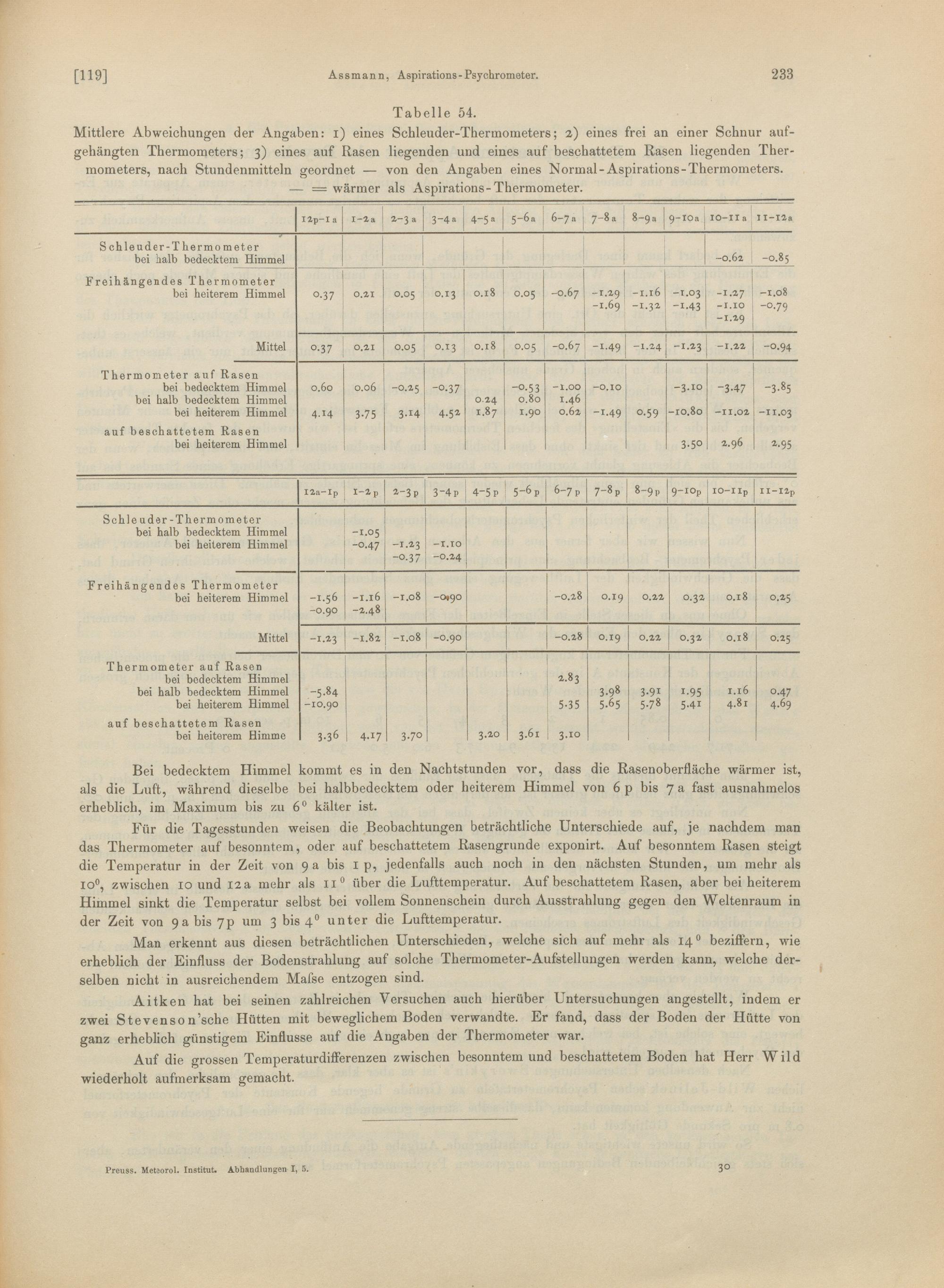 11. Vergleichende Beobachtungen des Normal-Aspirations-Thermometers mit anderen Methoden zur Ermittelung der Lufttemperatur