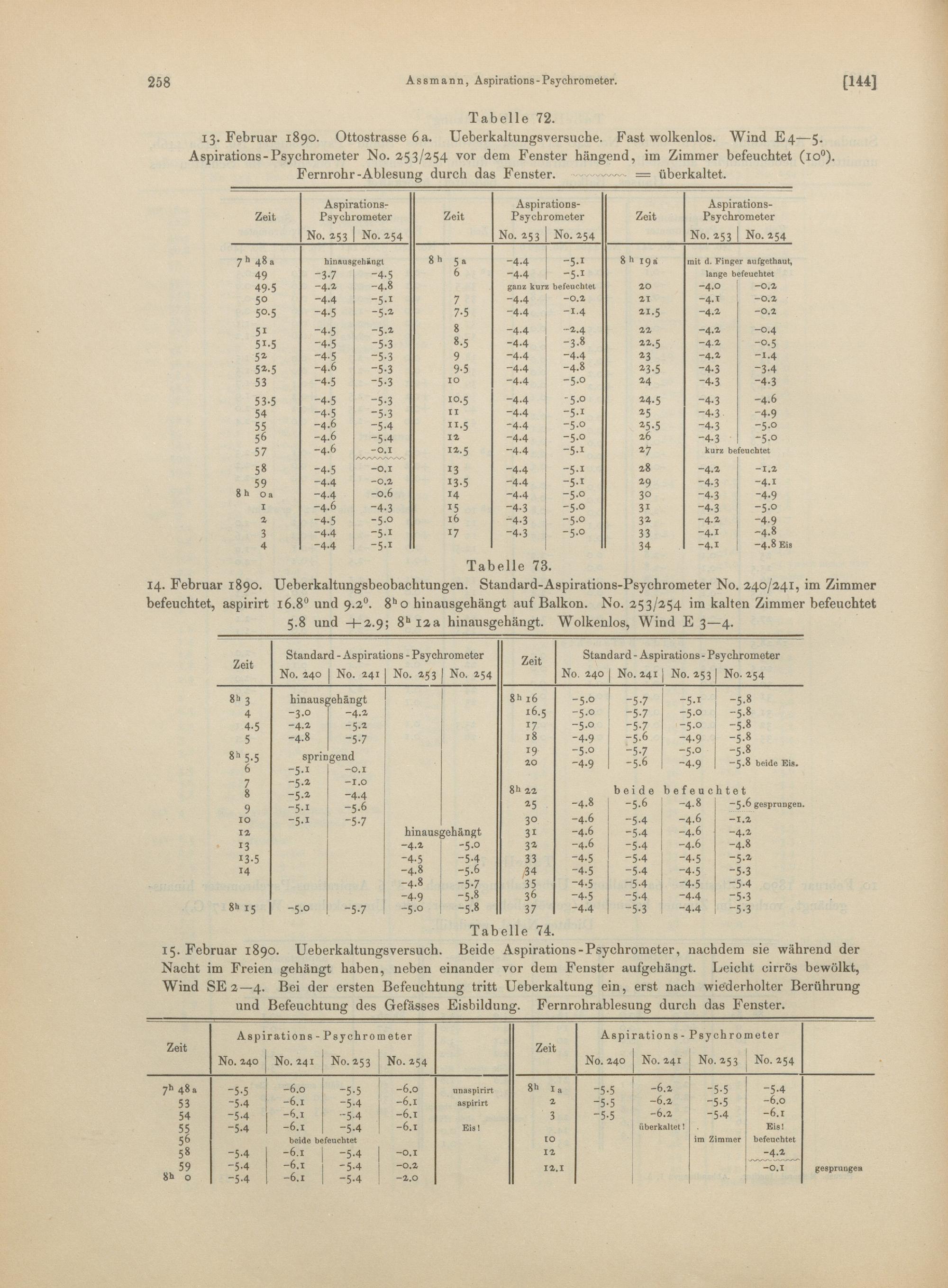 6. Ergebnisse der Untersuchungen des Aspirations-Psychrometers in seiner ersten Gestalt