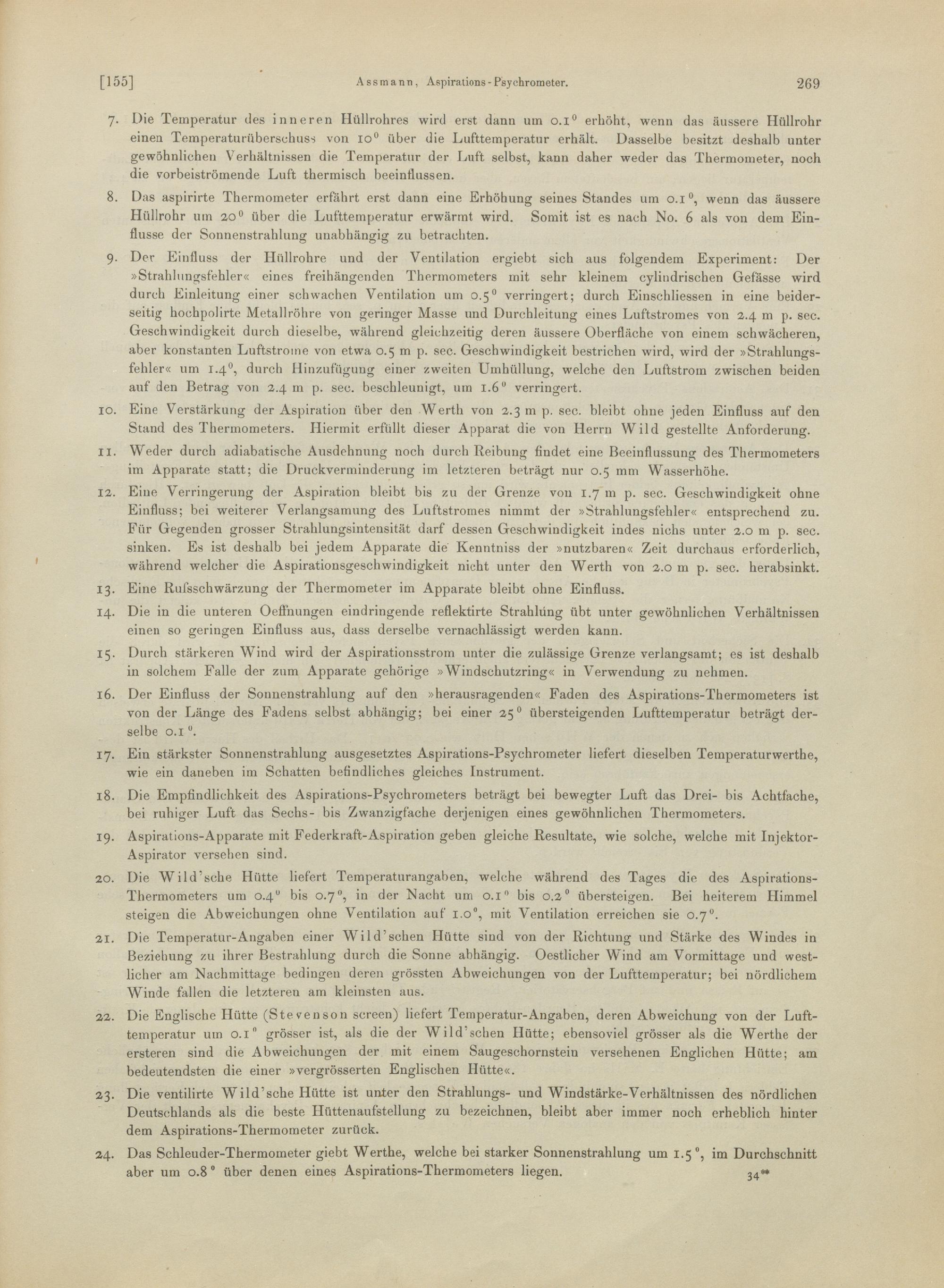 7. Das abgeänderte Aspirations-Psychrometer und seine Prüfung durch Herrn Professor Wild