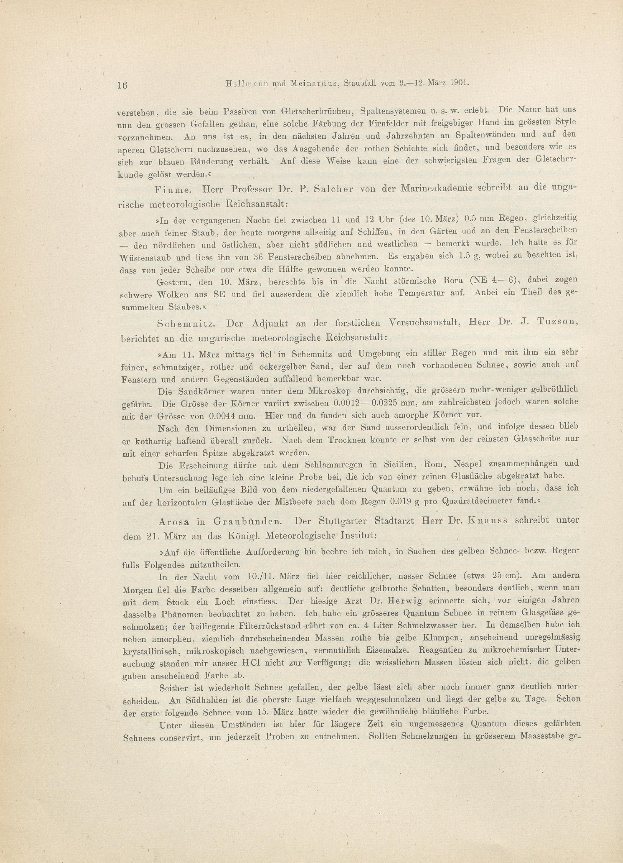 Der grosse Staubfall vom 9. bis 12. März 1901 in Nordafrika, Süd- und Mitteleuropa : mit sechs Tafeln / von G. Hellmann und W. Meinardus