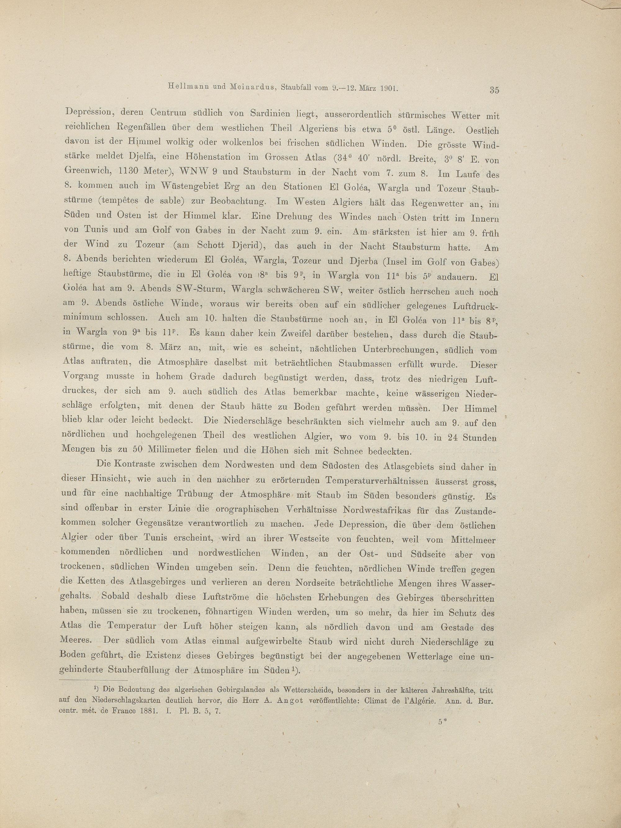 Der grosse Staubfall vom 9. bis 12. März 1901 in Nordafrika, Süd- und Mitteleuropa : mit sechs Tafeln / von G. Hellmann und W. Meinardus