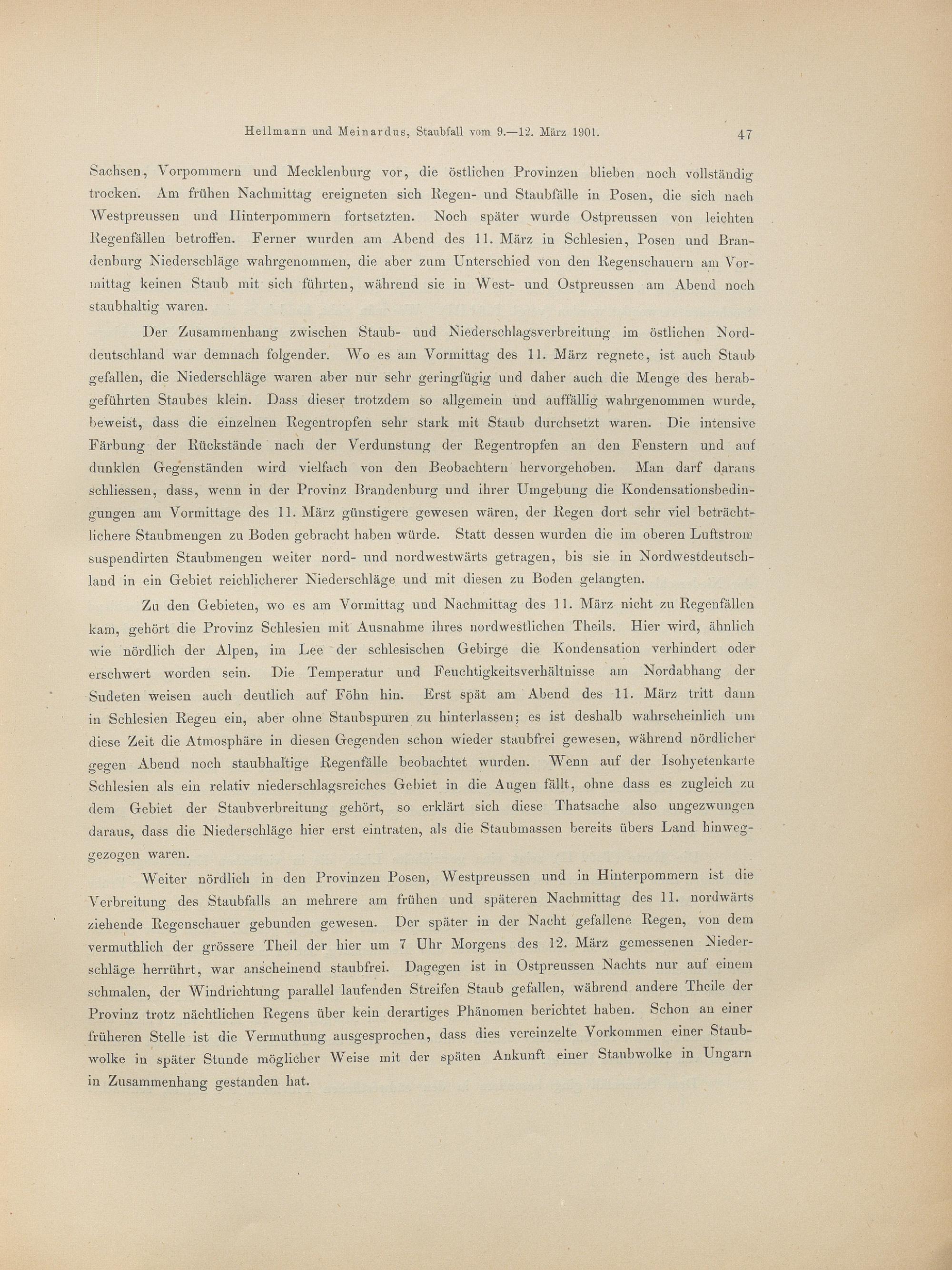 Der grosse Staubfall vom 9. bis 12. März 1901 in Nordafrika, Süd- und Mitteleuropa : mit sechs Tafeln / von G. Hellmann und W. Meinardus