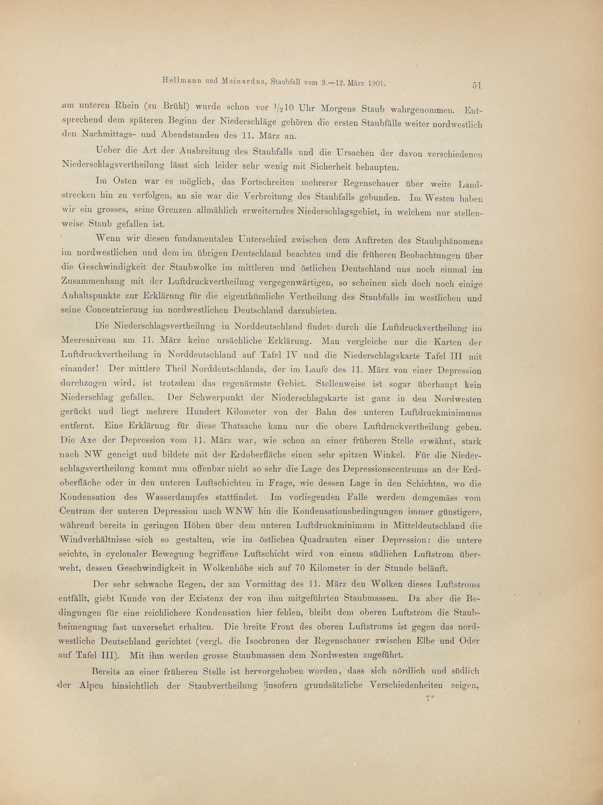 Der grosse Staubfall vom 9. bis 12. März 1901 in Nordafrika, Süd- und Mitteleuropa : mit sechs Tafeln / von G. Hellmann und W. Meinardus