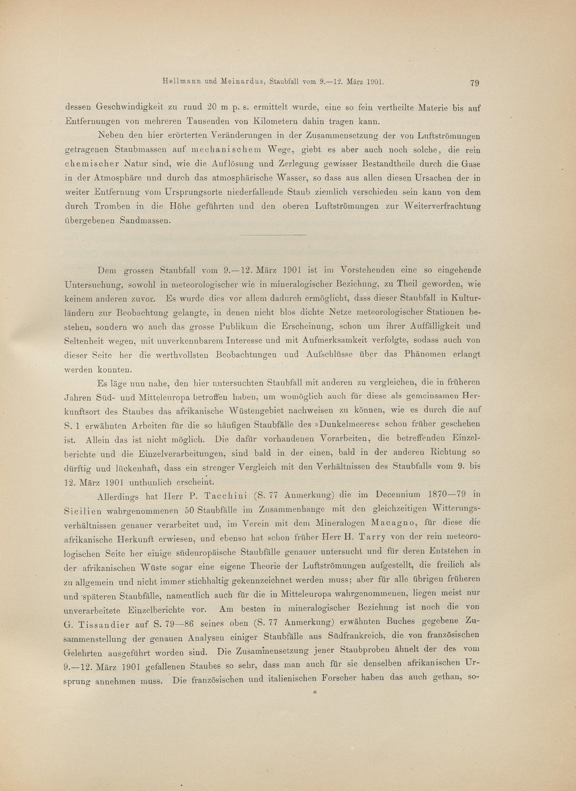 Der grosse Staubfall vom 9. bis 12. März 1901 in Nordafrika, Süd- und Mitteleuropa : mit sechs Tafeln / von G. Hellmann und W. Meinardus
