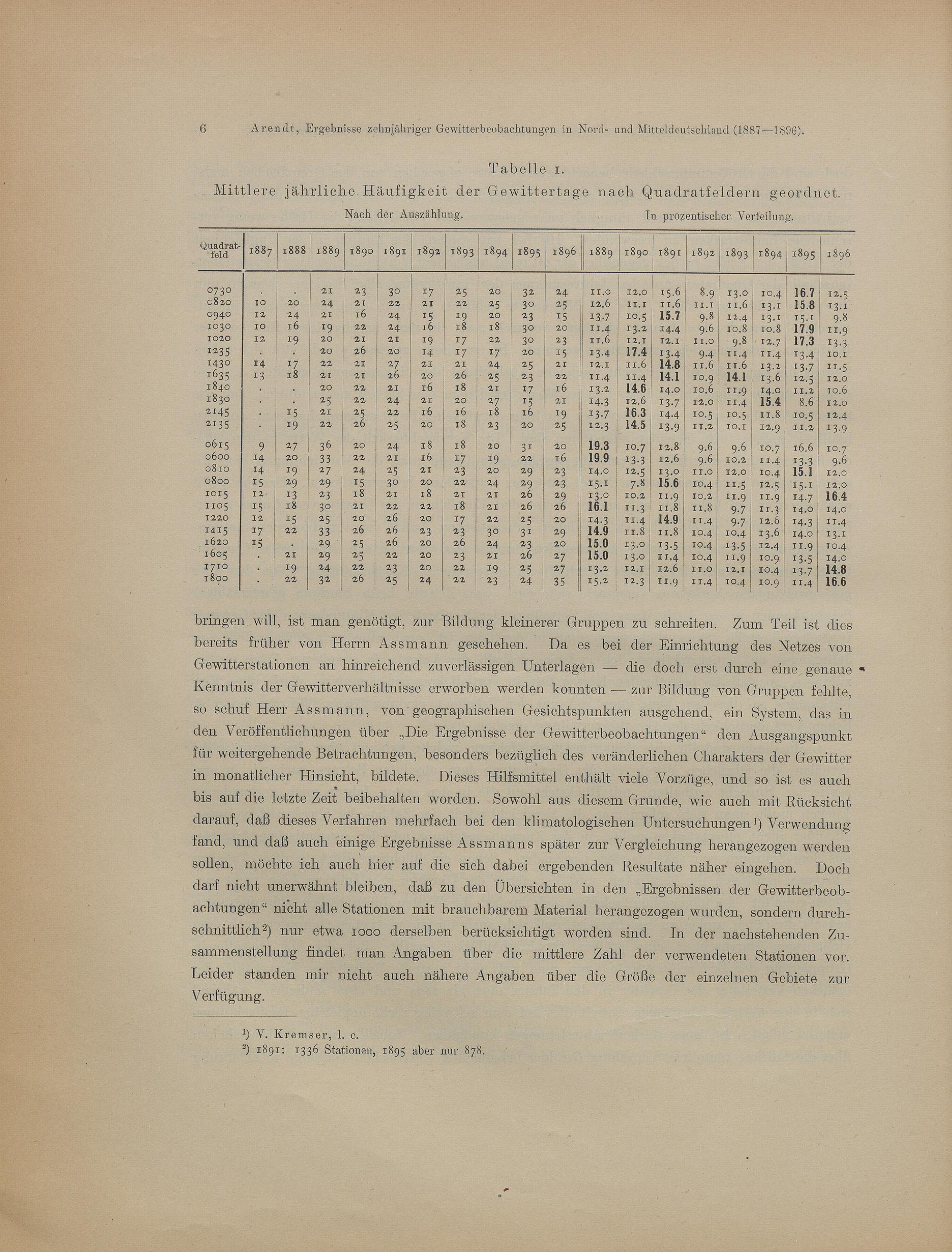 Tabellarische Übersichten zehnjähriger Gewitterbeobachtungen (1887-1896)