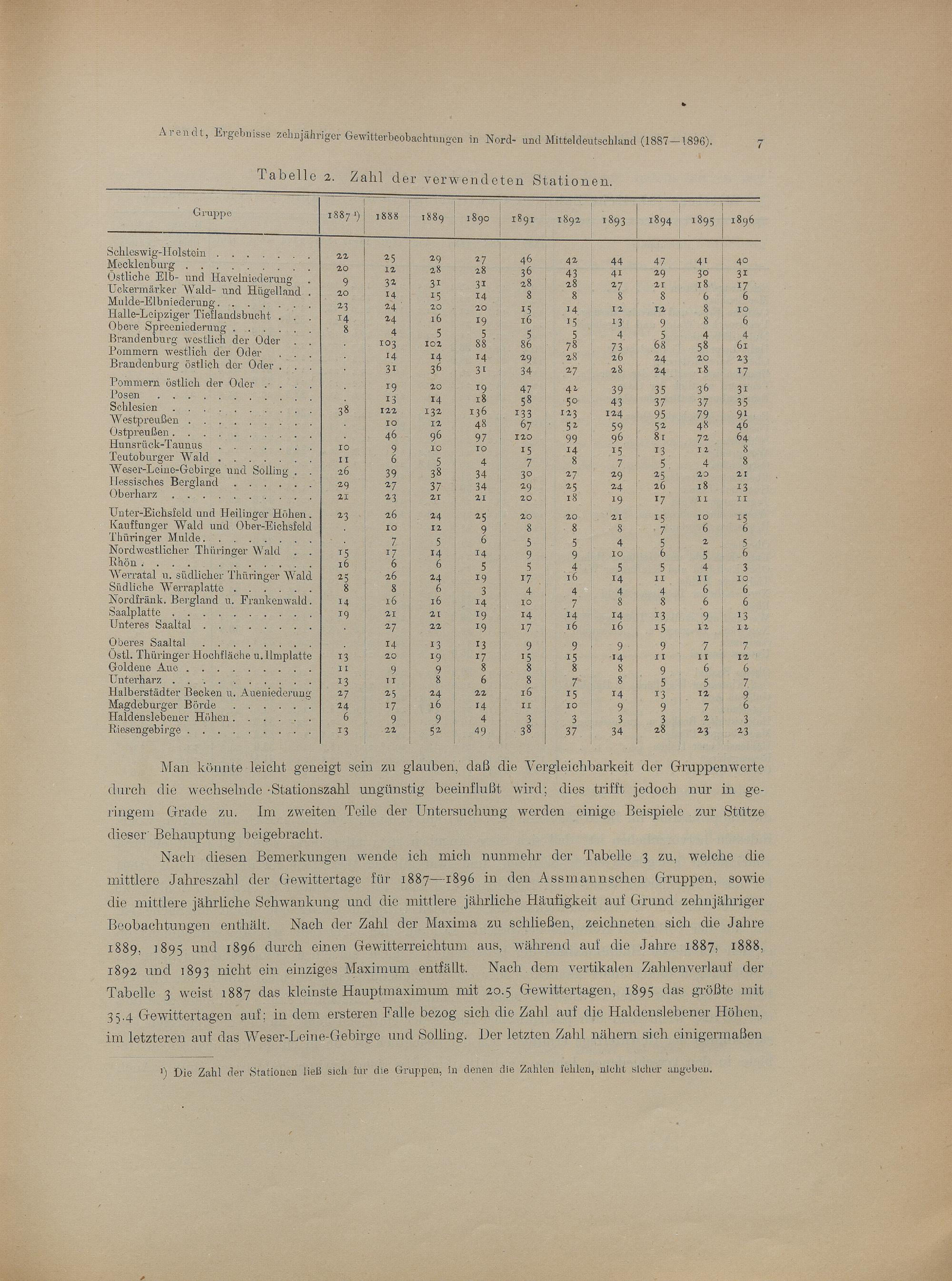 2. Theil: Ergebnisse aus den Beobachtungen ausgewählter Stationen mit zehnjähriger Dauer (1887-1896)