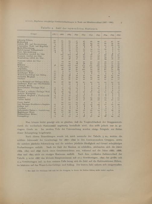 Tabellarische Übersichten zehnjähriger Gewitterbeobachtungen (1887-1896)