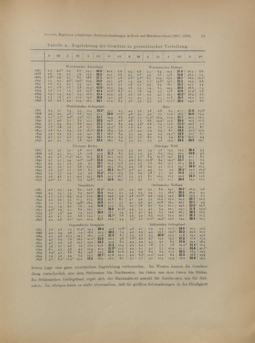 Tabellarische Übersichten zehnjähriger Gewitterbeobachtungen (1887-1896)