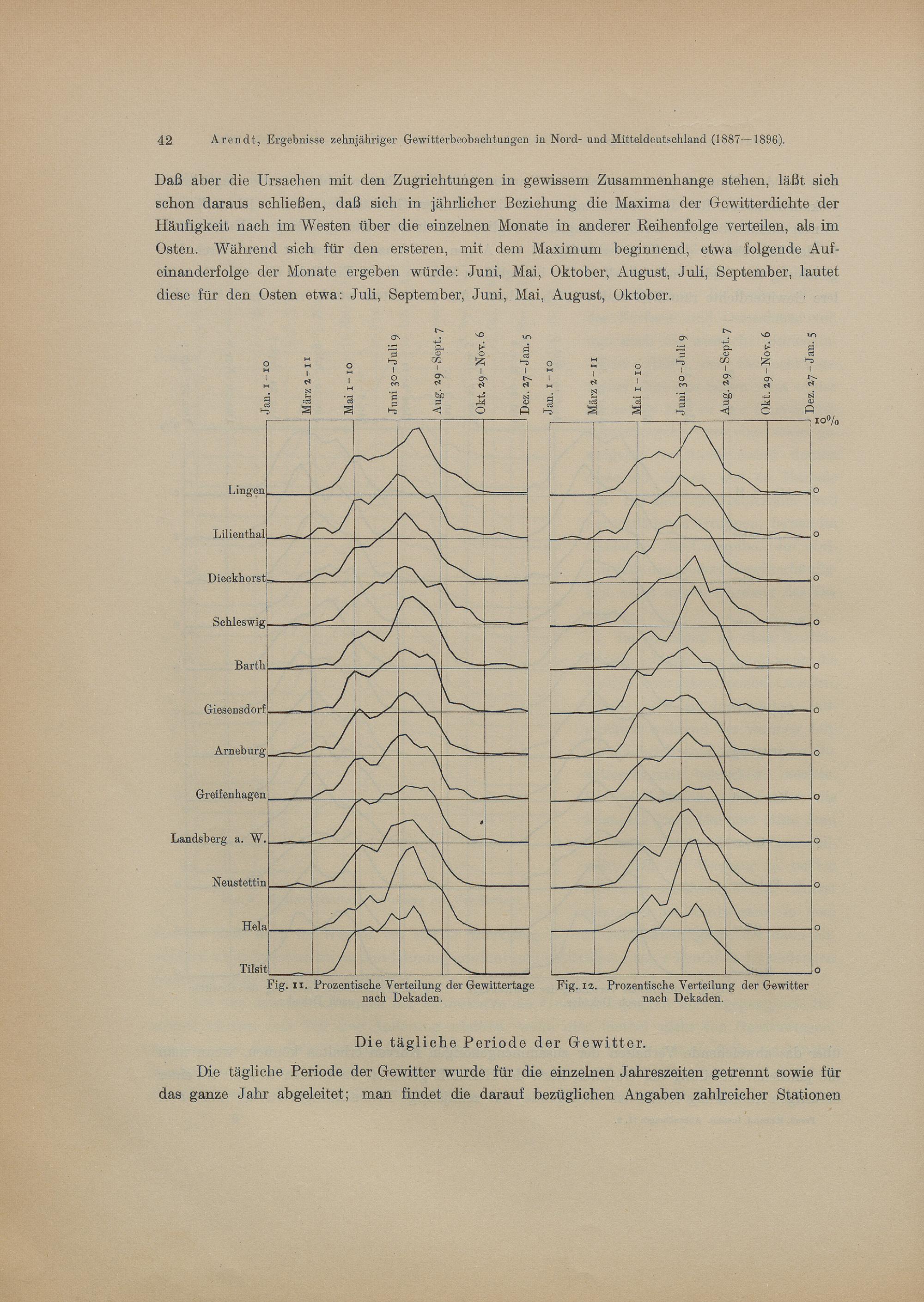 Ergebnisse zehnjähriger Gewitterbeobachtungen in Nord- und Mitteldeutschland / von Th. Arendt