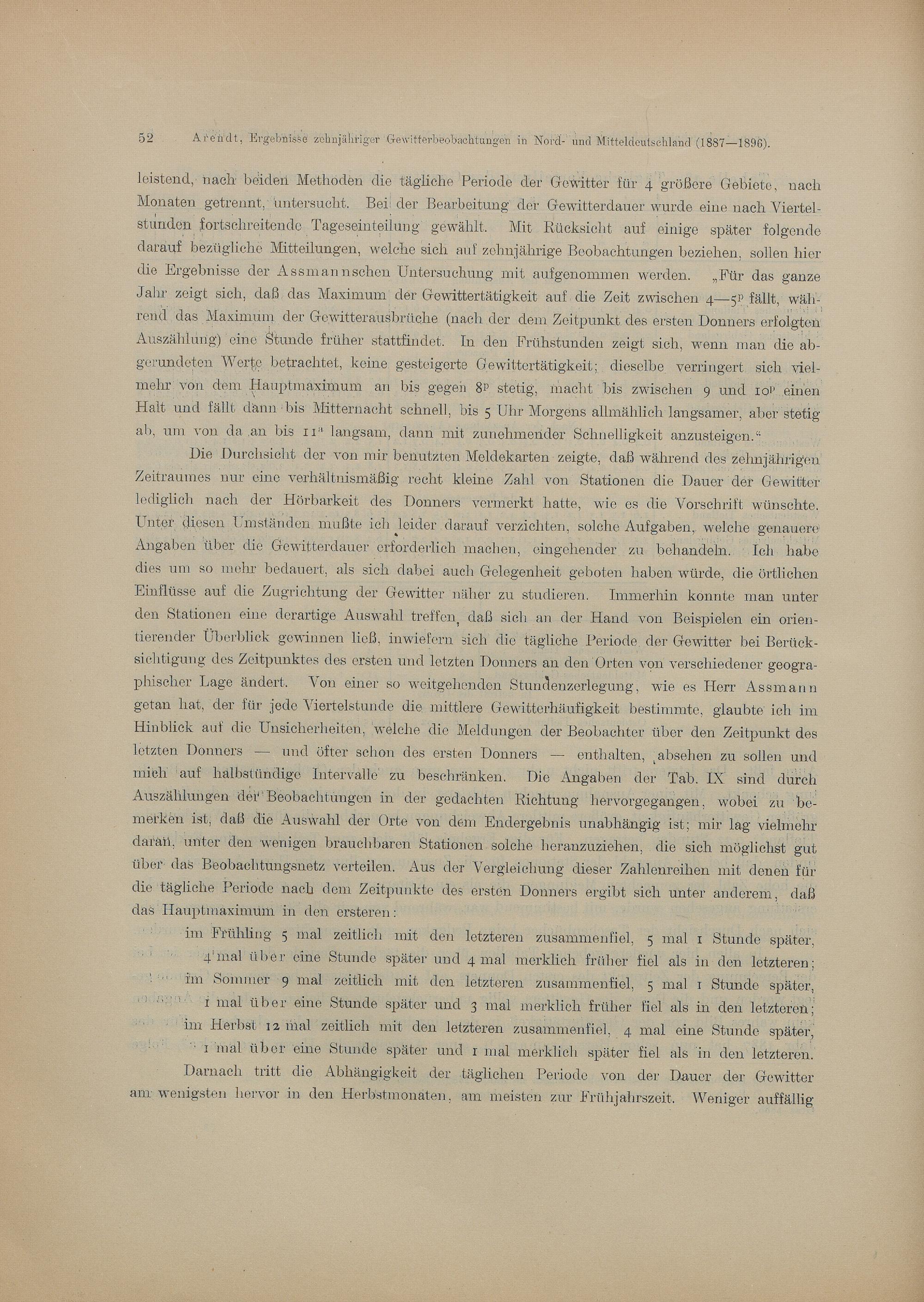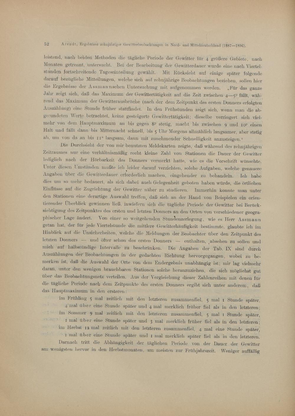 Ergebnisse zehnjähriger Gewitterbeobachtungen in Nord- und Mitteldeutschland / von Th. Arendt