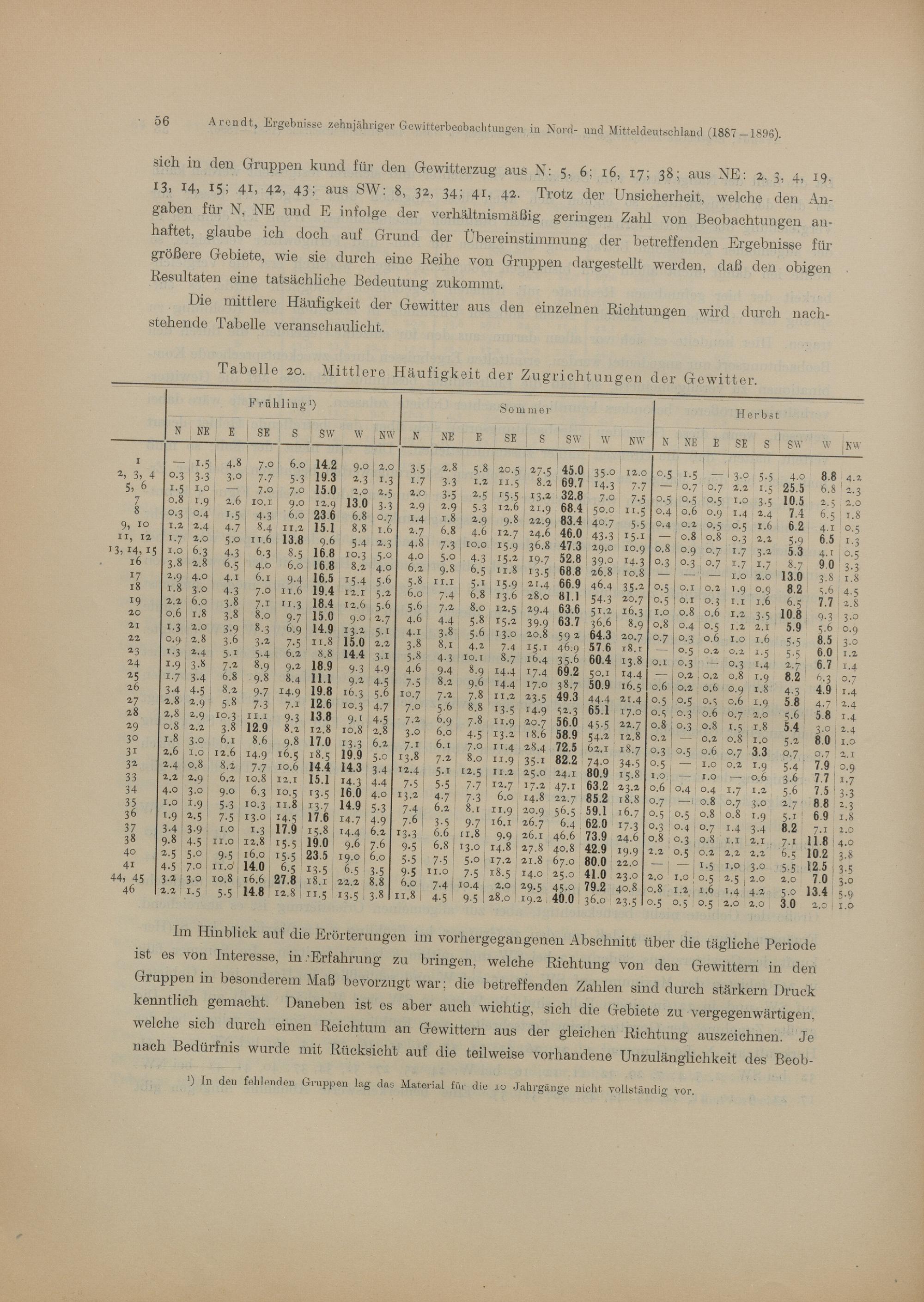 Tabellarische Übersichten zehnjähriger Gewitterbeobachtungen (1887-1896)