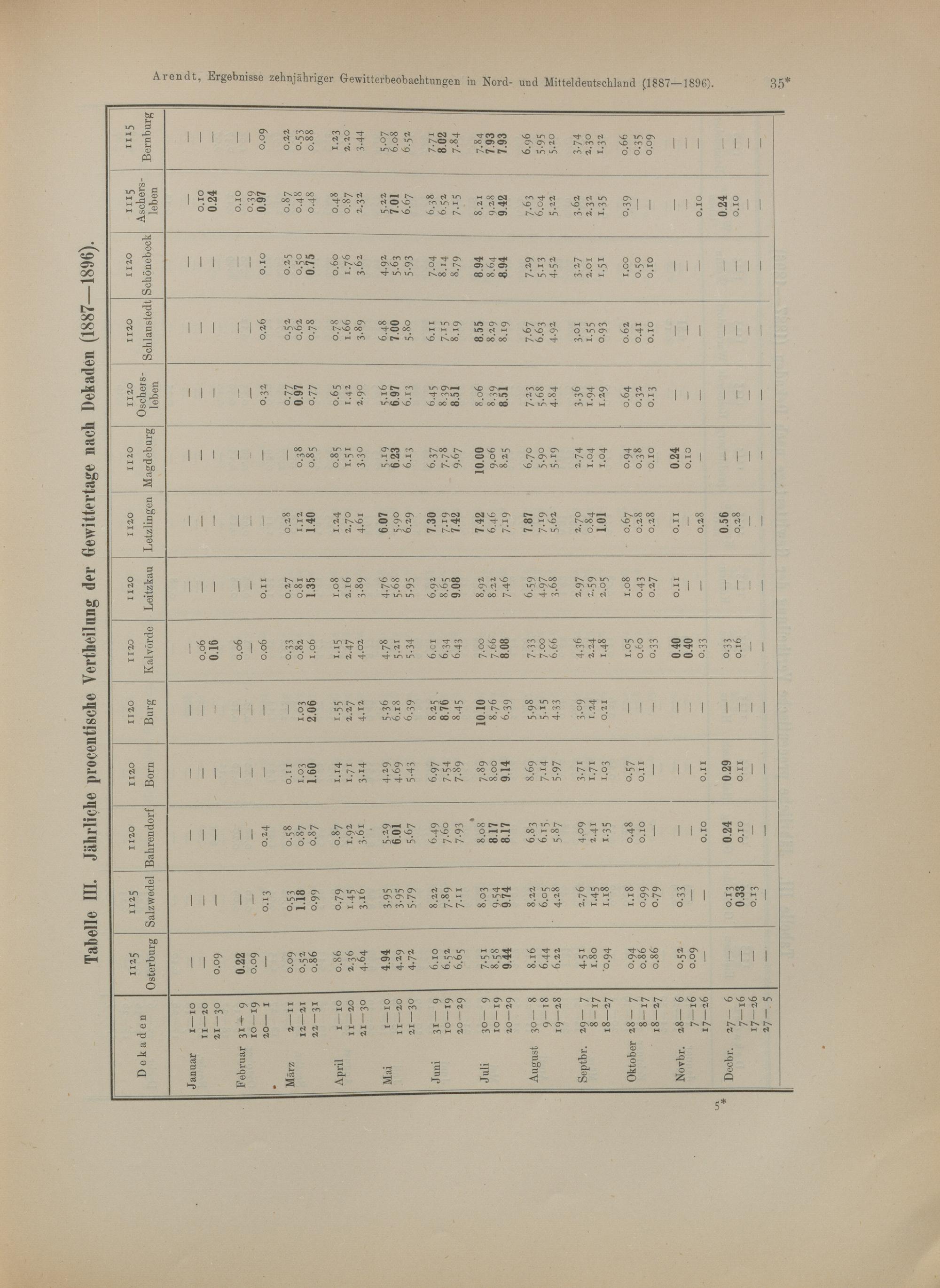 III. Jährliche prozentische Verteilung der Gewittertage nach Dekaden