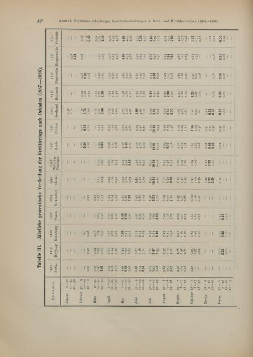 III. Jährliche prozentische Verteilung der Gewittertage nach Dekaden