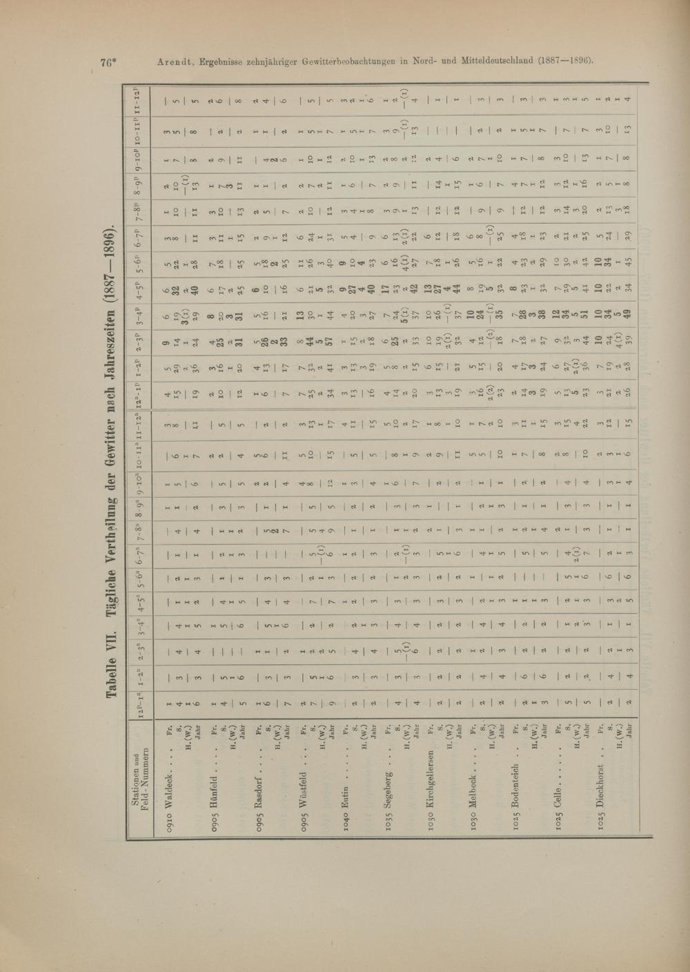 Tabellarische Übersichten zehnjähriger Gewitterbeobachtungen (1887-1896)