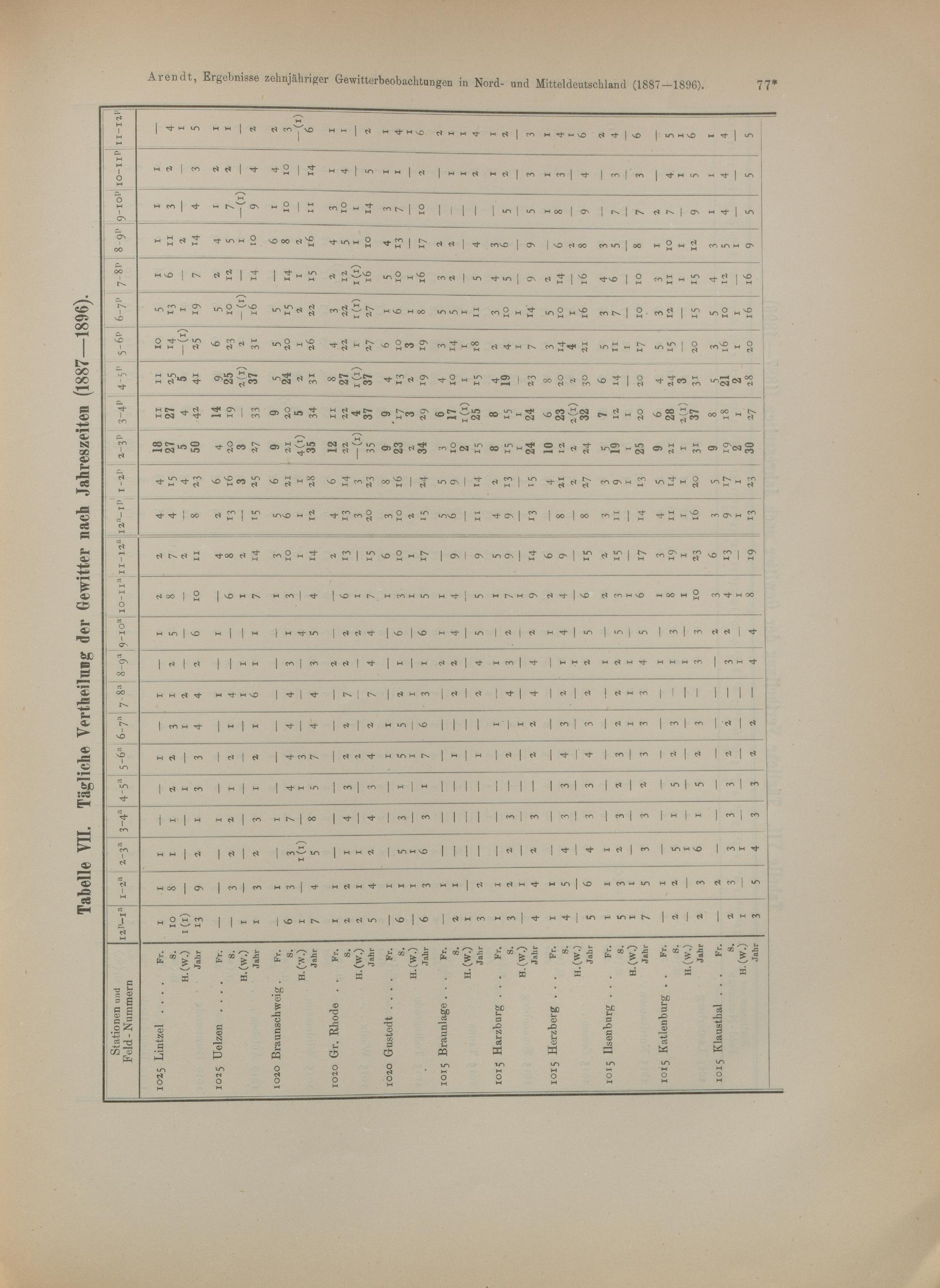 Tabellarische Übersichten zehnjähriger Gewitterbeobachtungen (1887-1896)