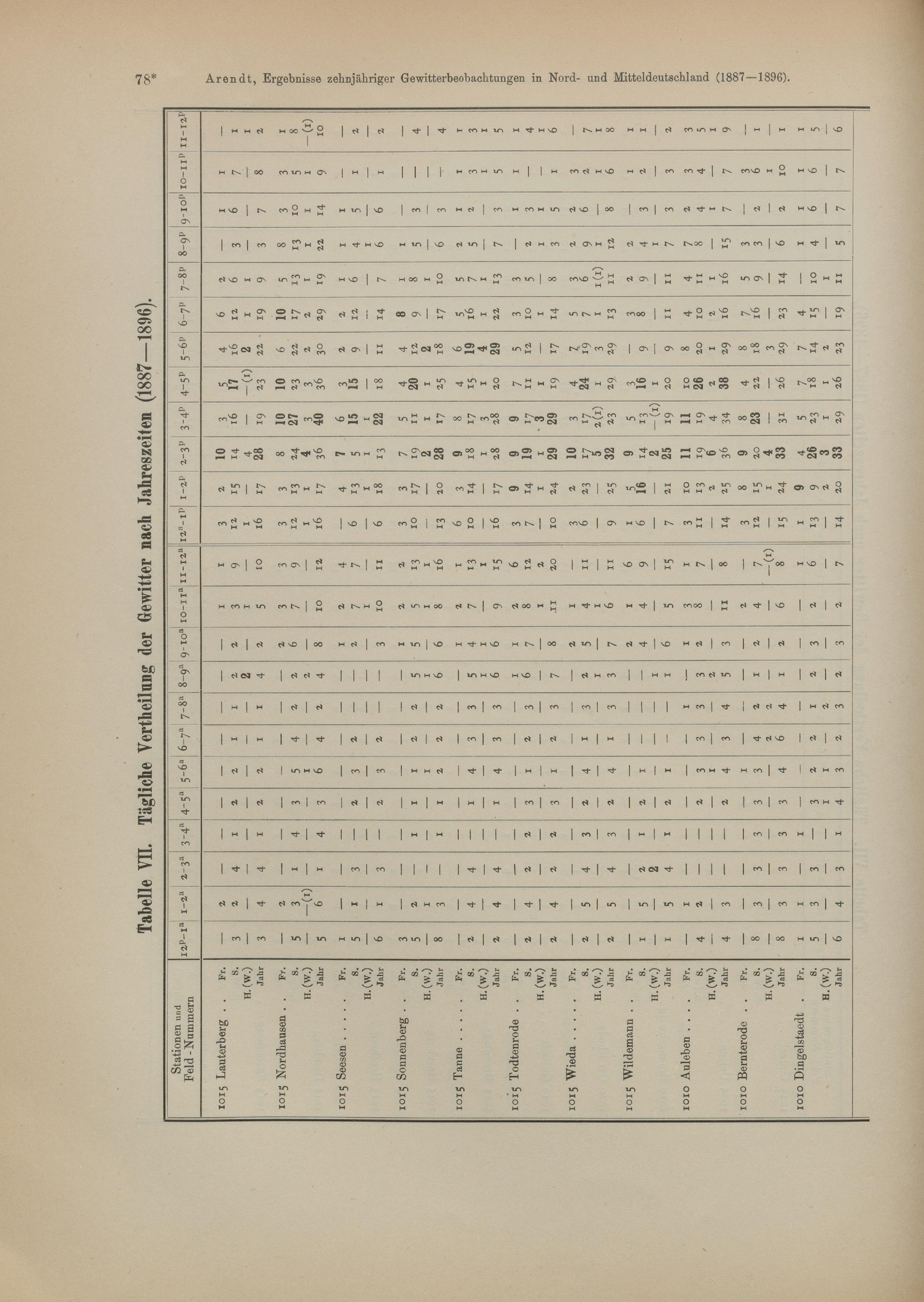 VII. Tägliche Verteilung der Gewitter nach Jahreszeiten