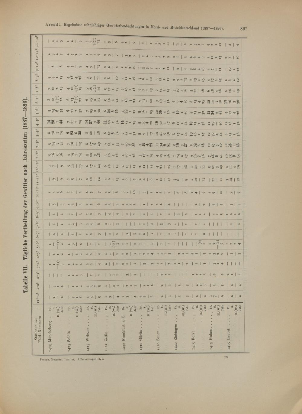 VII. Tägliche Verteilung der Gewitter nach Jahreszeiten