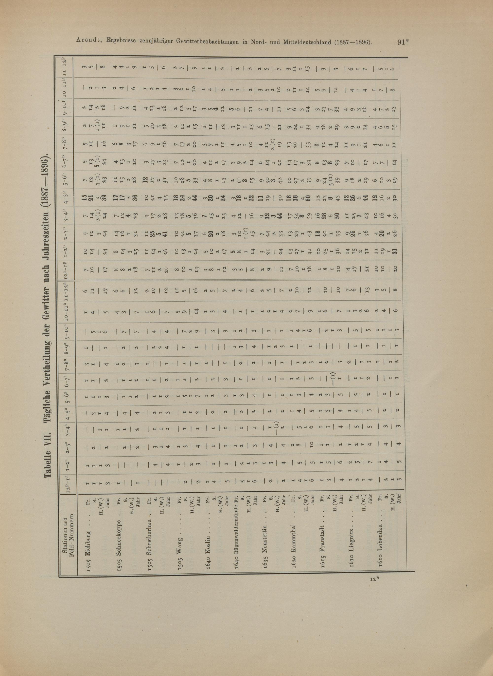 Tabellarische Übersichten zehnjähriger Gewitterbeobachtungen (1887-1896)