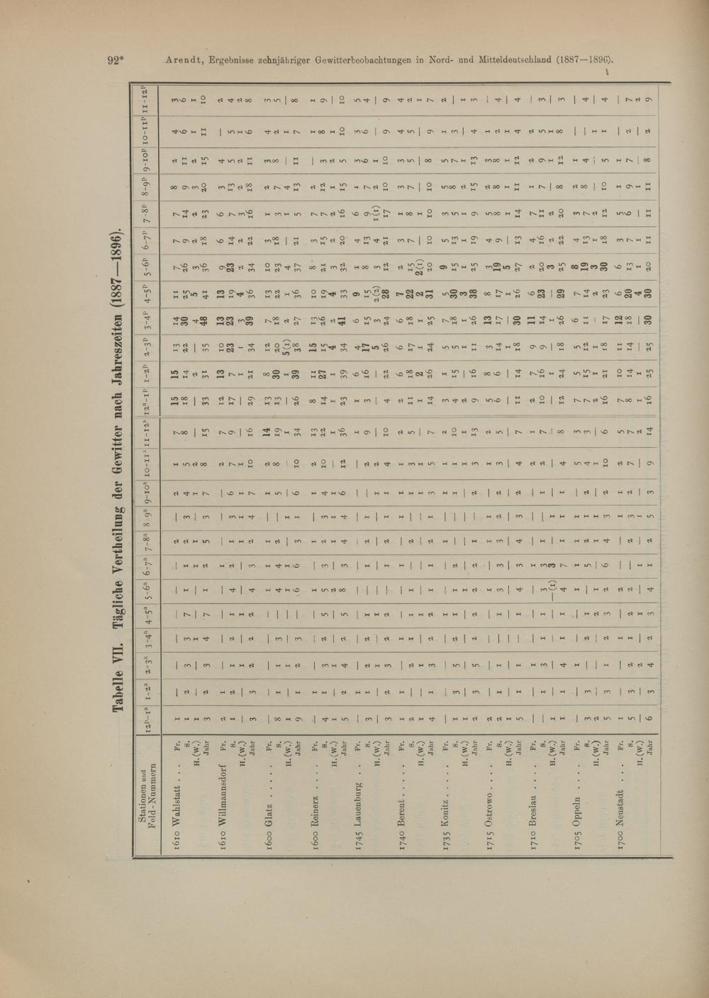 Tabellarische Übersichten zehnjähriger Gewitterbeobachtungen (1887-1896)
