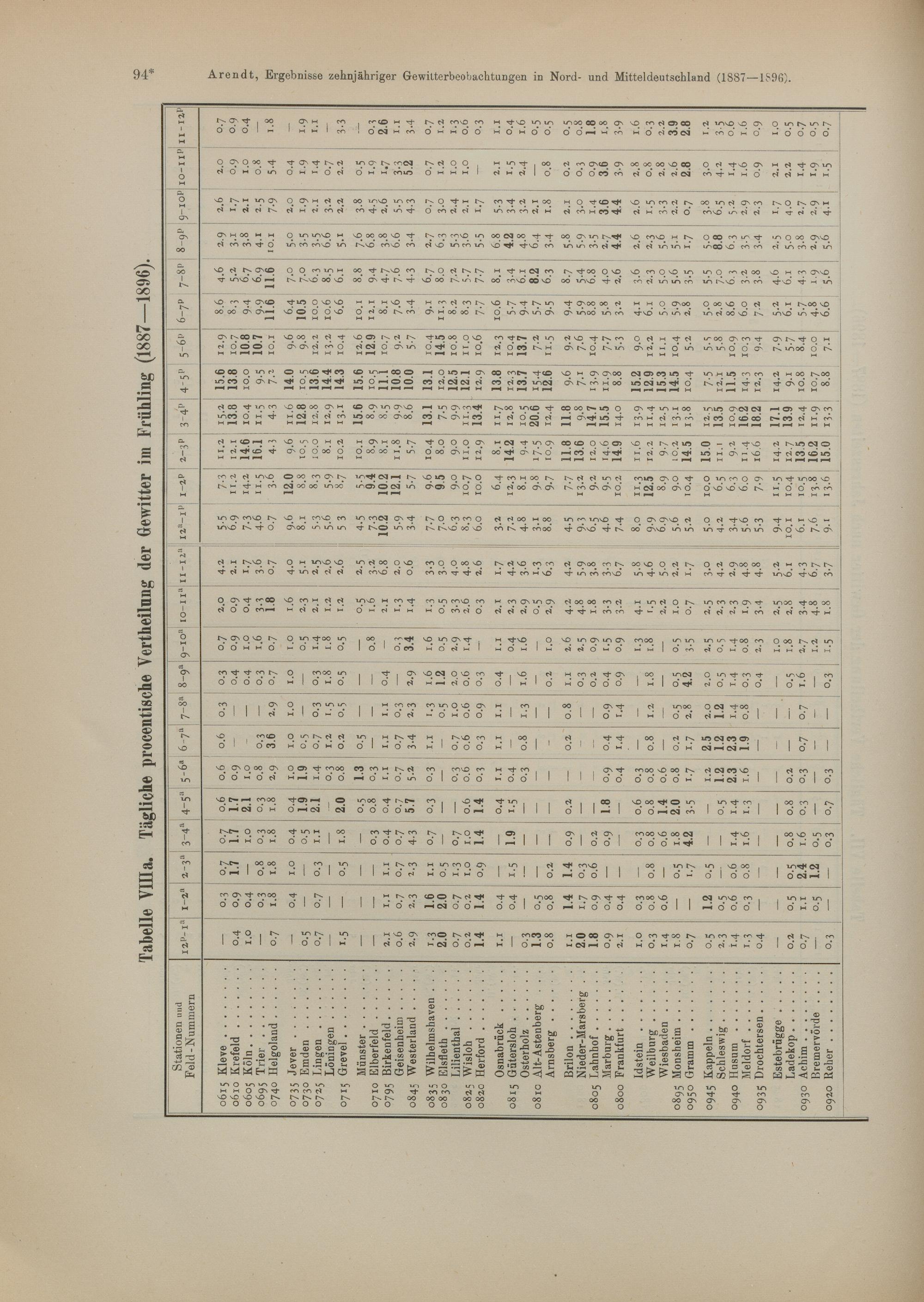 VIII a. Tägliche prozentische Verteilung der Gewitter im Frühling