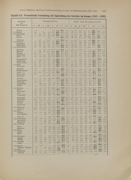 Tabellarische Übersichten zehnjähriger Gewitterbeobachtungen (1887-1896)