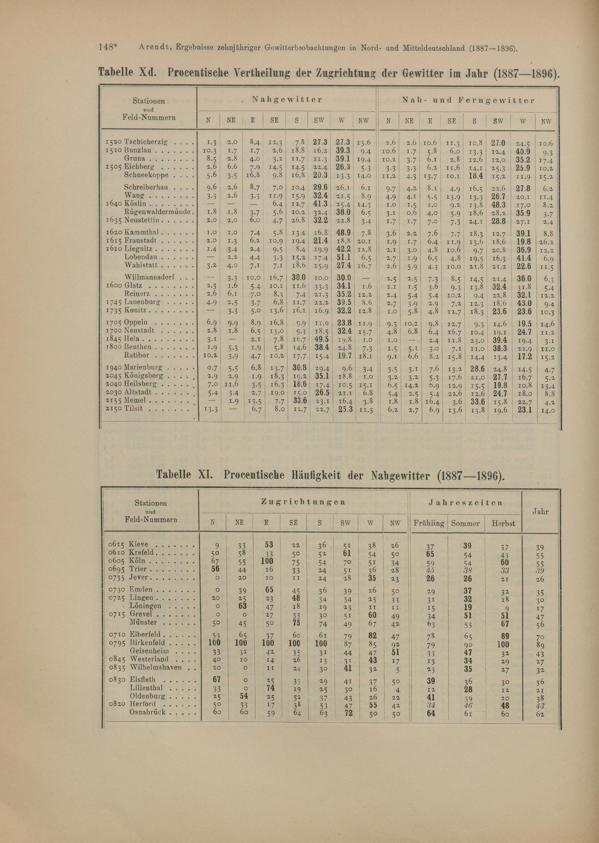 Tabellarische Übersichten zehnjähriger Gewitterbeobachtungen (1887-1896)